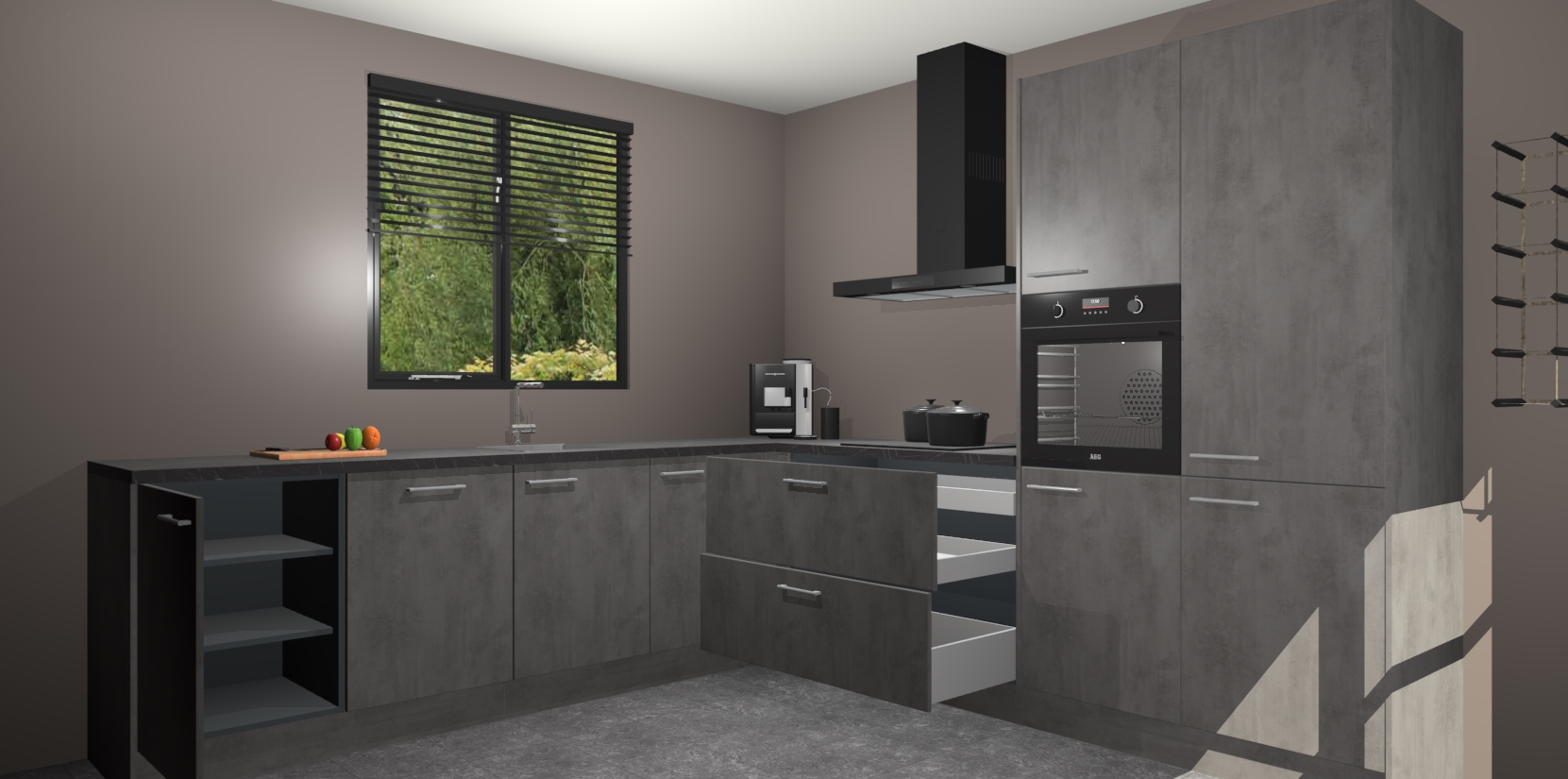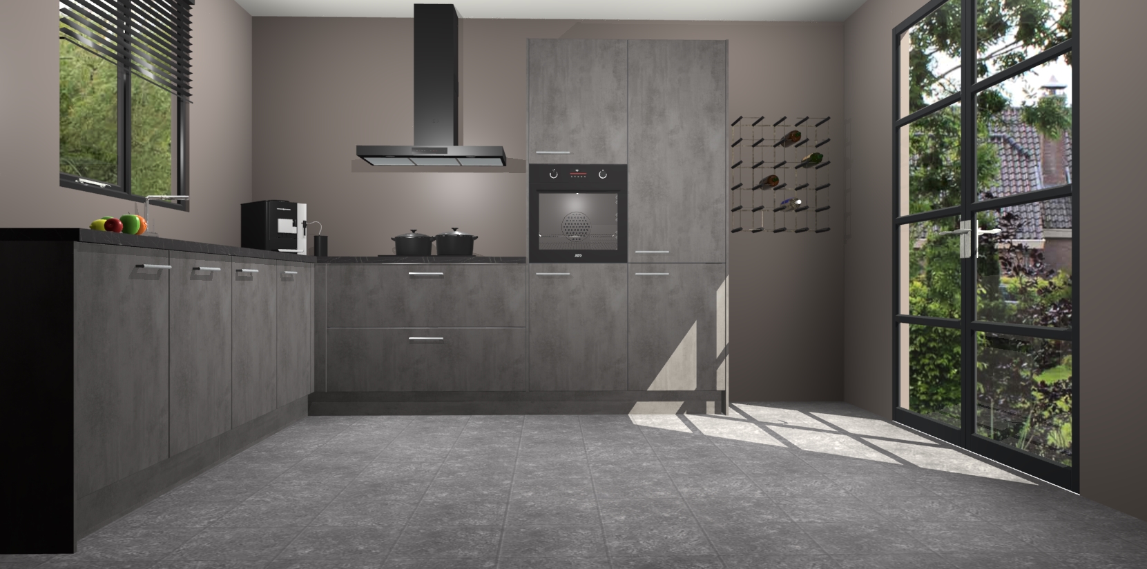 De Beton Antraciet keuken Porto heeft 5 ingebouwde apparaten - een oven, inductiekookplaat, afzuigkap, vaatwasser en koelkast - waarmee u in een handomdraai heerlijke gerechten bereidt. Soft-close deuren zorgen voor nog meer functionaliteit en gemak. En dit alles voor een onverslaanbaar vaste prijs. En als u nu bestelt, duurt de levering maar 7 weken! Wat nog ongelooflijker is, is dat onze kasten voor gemonteerd worden geleverd.