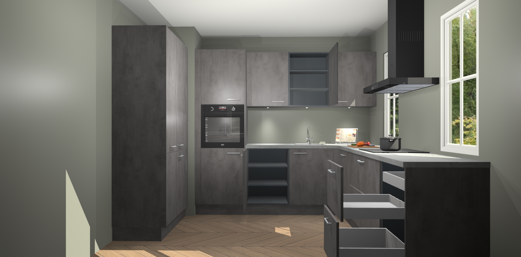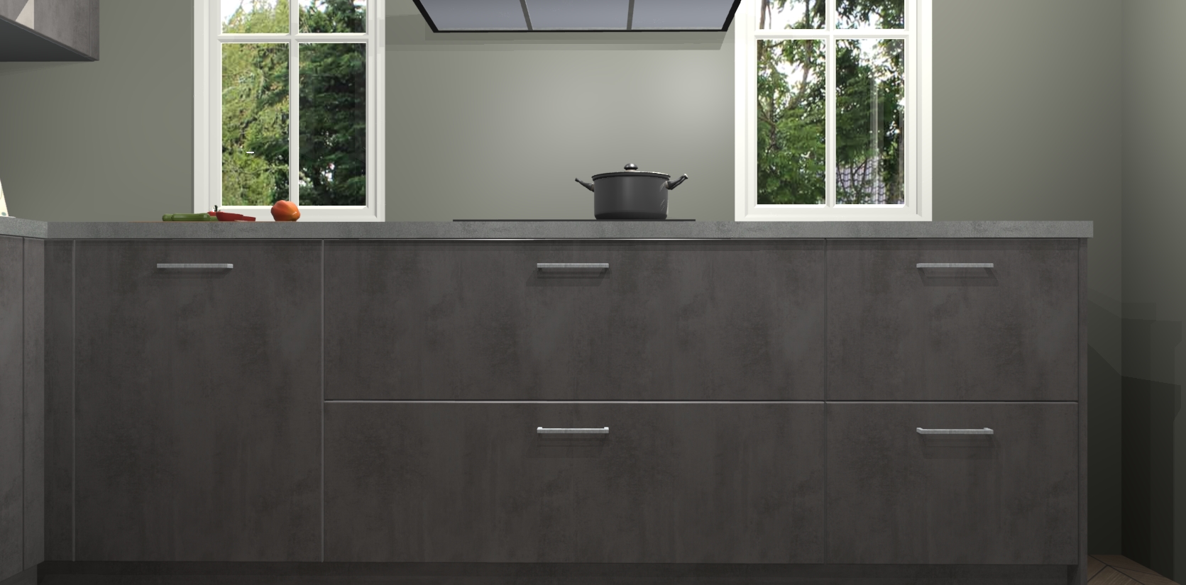 En met onze scherpe prijzen hoeft u niet in te leveren op kwaliteit. Beton antraciet keuken Regina is de perfecte combinatie van functioneel en betaalbaar, dus waarom zou u ergens anders zoeken naar de keuken van uw dromen?