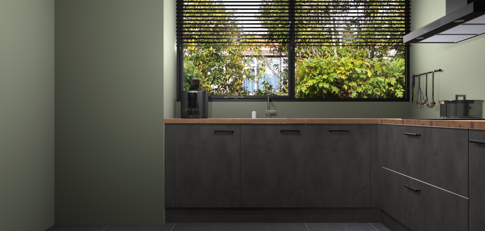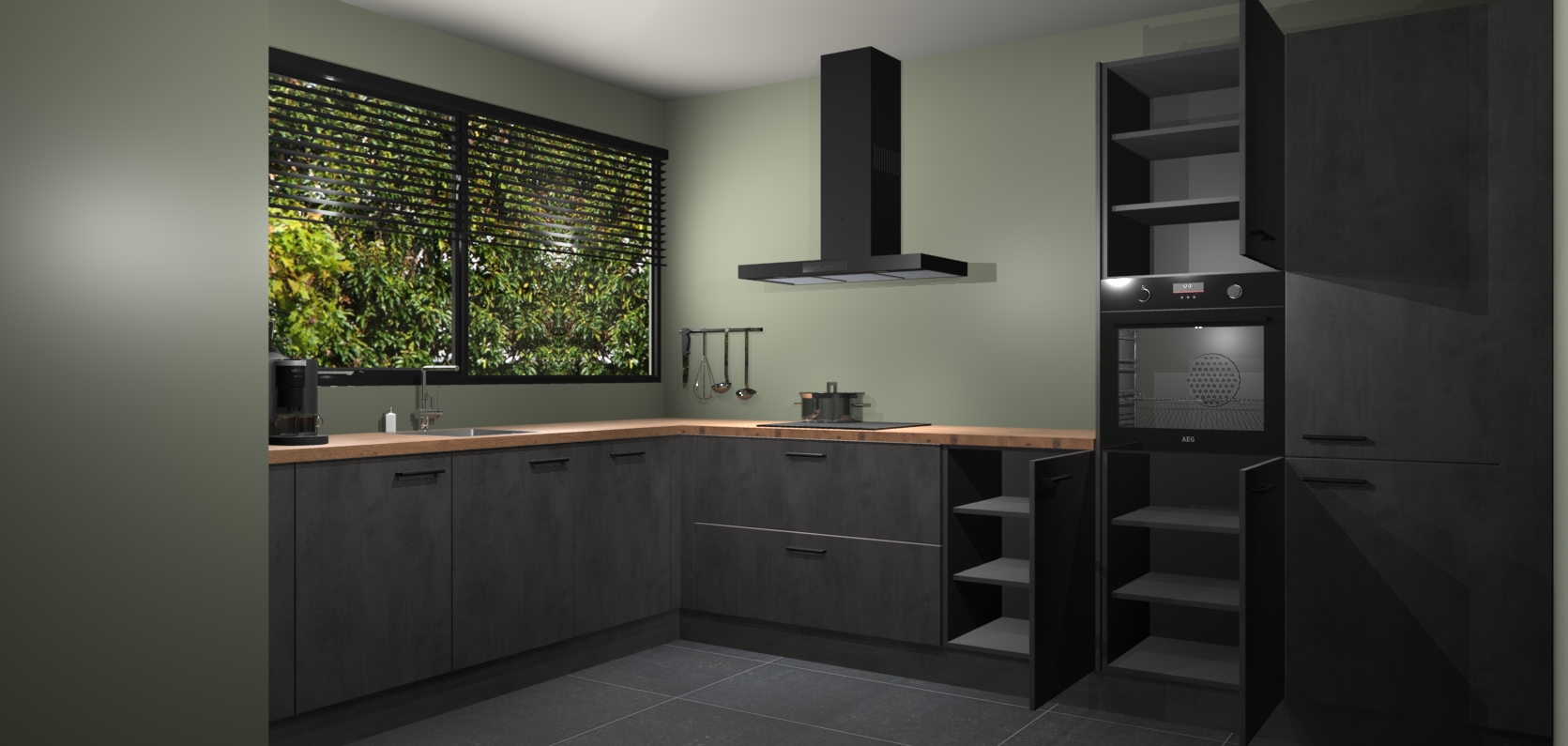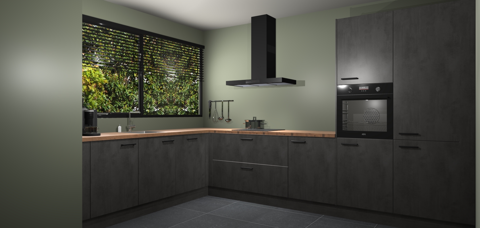 Wij presenteren de revolutie in keukens: de Beton Antraciet keuken Rhodos. Met modern design, een tijdloos uiterlijk en kasten die al voor gemonteerd worden geleverd, laat deze stijlvolle keuken uw kookervaring op een hele nieuwe manier transformeren.