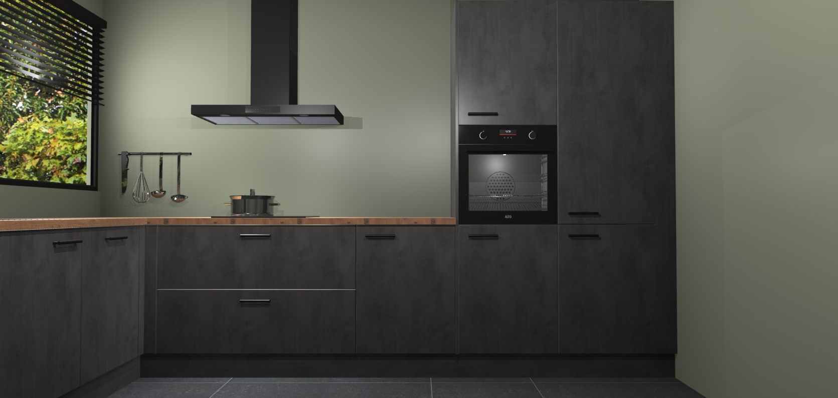 Met een modern, tijdloos design en ruime opslagruimte, zult u zich in no-time thuis voelen in uw nieuwe keuken. Uw leven wordt eenvoudiger met de soft-close deuren die voor het ultieme stille comfort zorgen - geen geluid dat u stoort terwijl u kookt. Ook is de keuken voorzien van 5 ingebouwde apparaten: een oven, inductie kookplaat, afzuigkap, vaatwasser en koelkast. Deze kunnen gemakkelijk na bestelling worden bijgewerkt naar AEG - waardoor uw luxe ervaring compleet is.