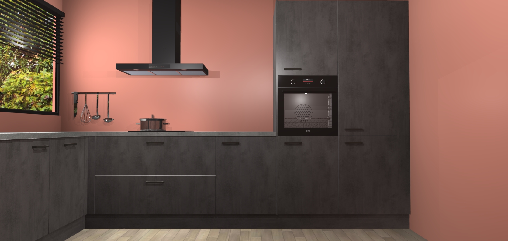 Wij presenteren de revolutie in keukens: de Beton Antraciet keuken Rhodos. Met modern design, een tijdloos uiterlijk en kasten die al voor gemonteerd worden geleverd, laat deze stijlvolle keuken uw kookervaring op een hele nieuwe manier transformeren.