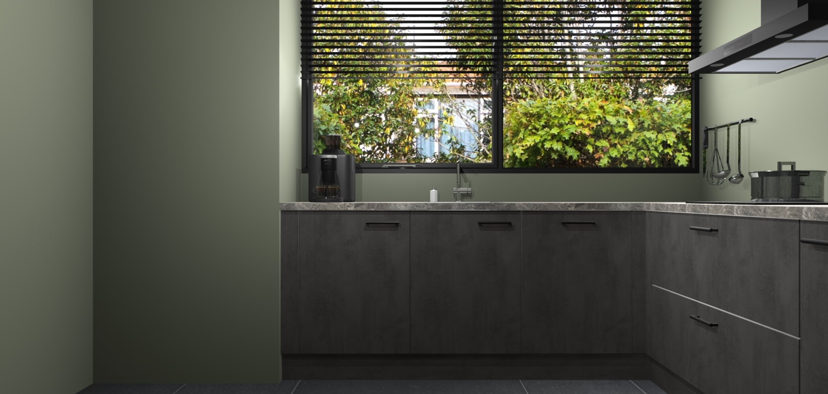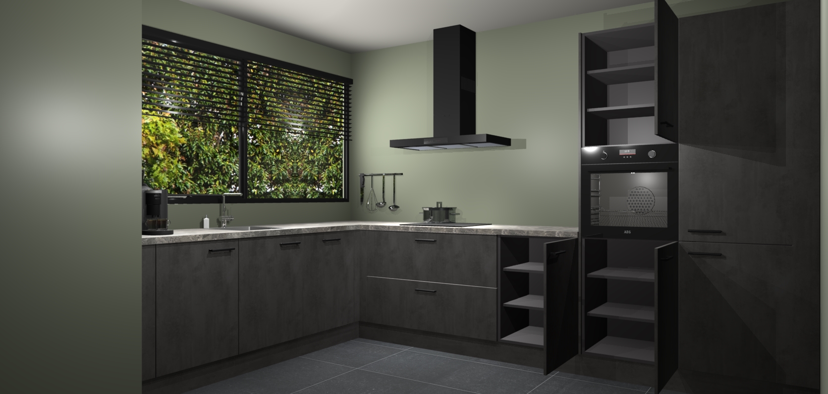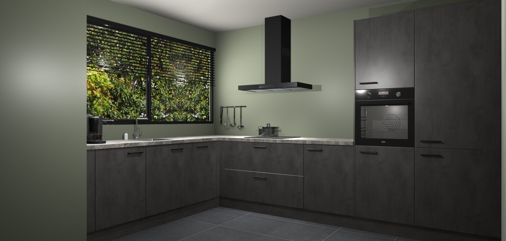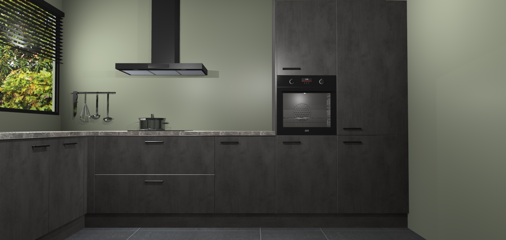 Wij presenteren de revolutie in keukens: de Beton Antraciet keuken Rhodos. Met modern design, een tijdloos uiterlijk en kasten die al voor gemonteerd worden geleverd, laat deze stijlvolle keuken uw kookervaring op een hele nieuwe manier transformeren.