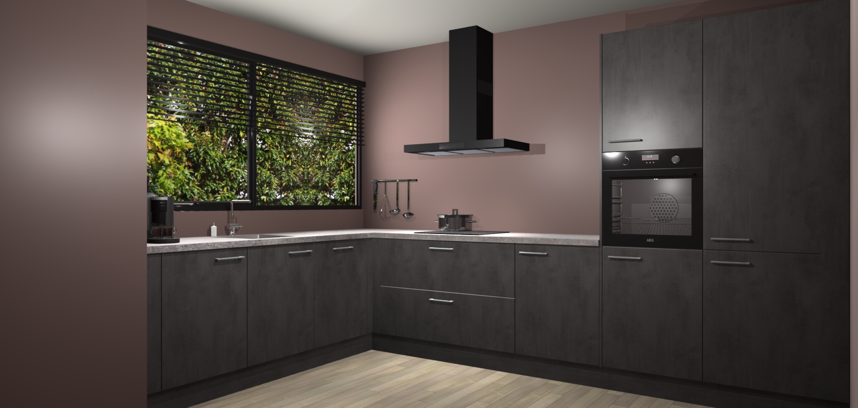 Wij presenteren de revolutie in keukens: de Beton Antraciet keuken Rhodos. Met modern design, een tijdloos uiterlijk en kasten die al voor gemonteerd worden geleverd, laat deze stijlvolle keuken uw kookervaring op een hele nieuwe manier transformeren.
