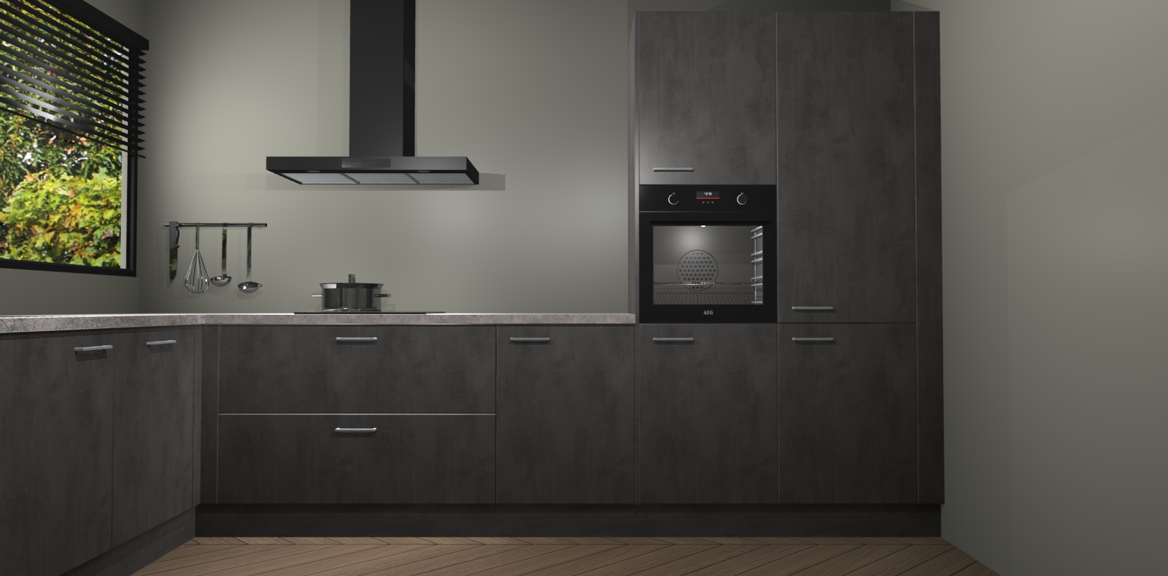 Wij presenteren de revolutie in keukens: de Beton Antraciet keuken Rhodos. Met modern design, een tijdloos uiterlijk en kasten die al voor gemonteerd worden geleverd, laat deze stijlvolle keuken uw kookervaring op een hele nieuwe manier transformeren.