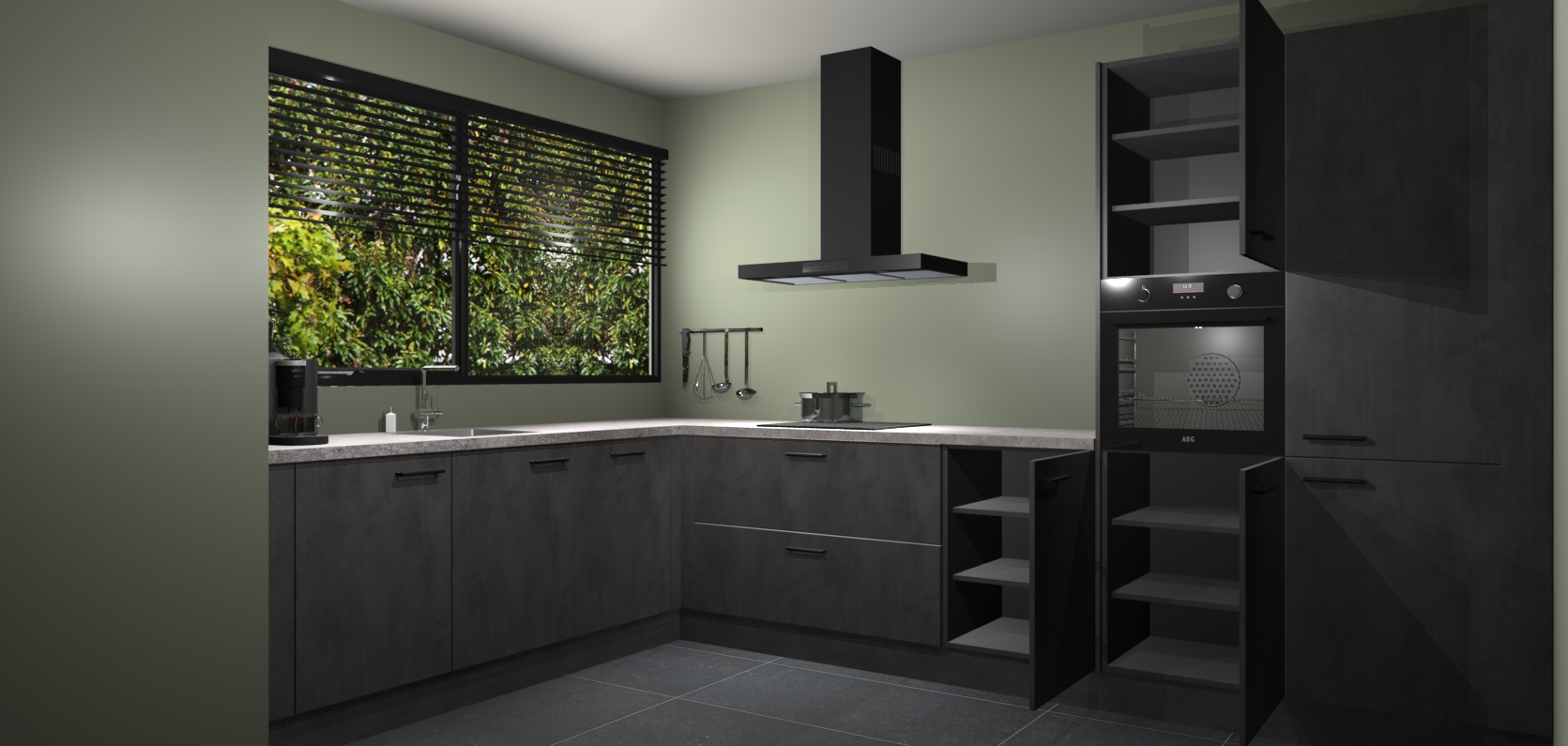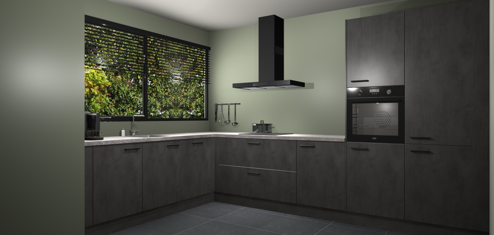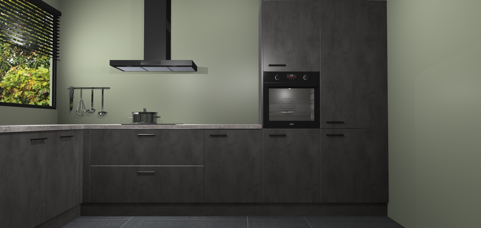 Wij presenteren de revolutie in keukens: de Beton Antraciet keuken Rhodos. Met modern design, een tijdloos uiterlijk en kasten die al voor gemonteerd worden geleverd, laat deze stijlvolle keuken uw kookervaring op een hele nieuwe manier transformeren.