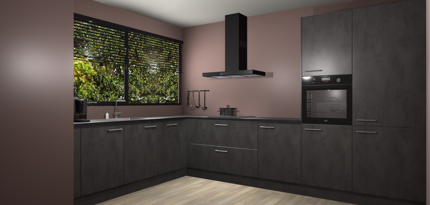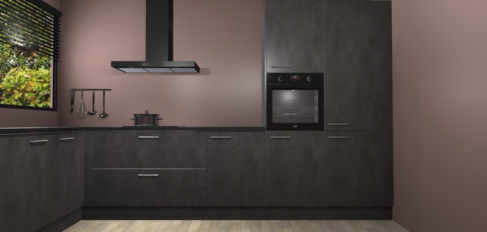 Wij presenteren de revolutie in keukens: de Beton Antraciet keuken Rhodos. Met modern design, een tijdloos uiterlijk en kasten die al voor gemonteerd worden geleverd, laat deze stijlvolle keuken uw kookervaring op een hele nieuwe manier transformeren.