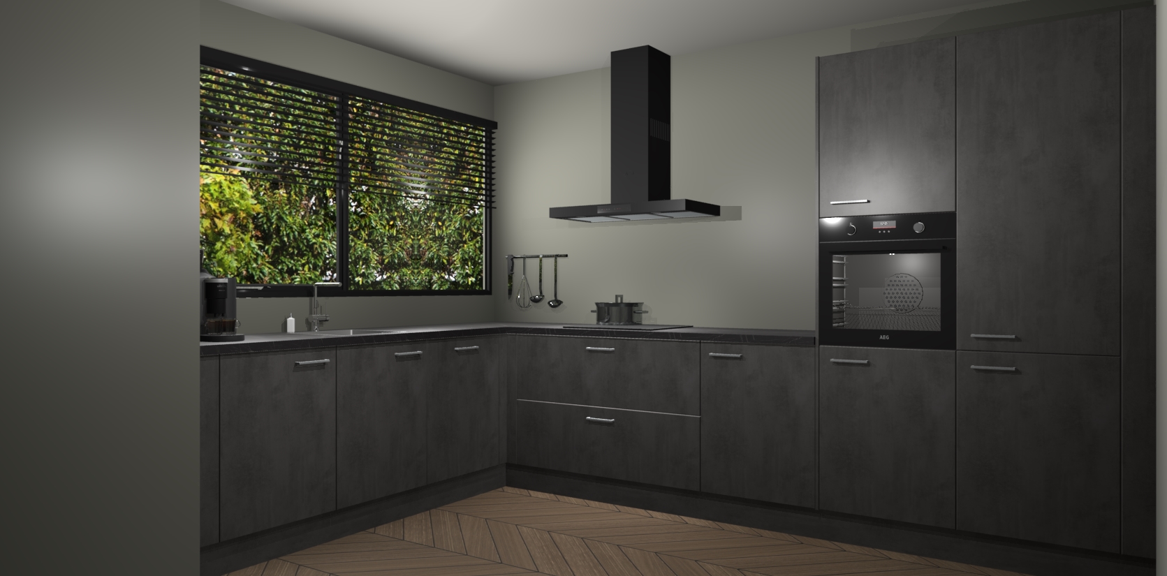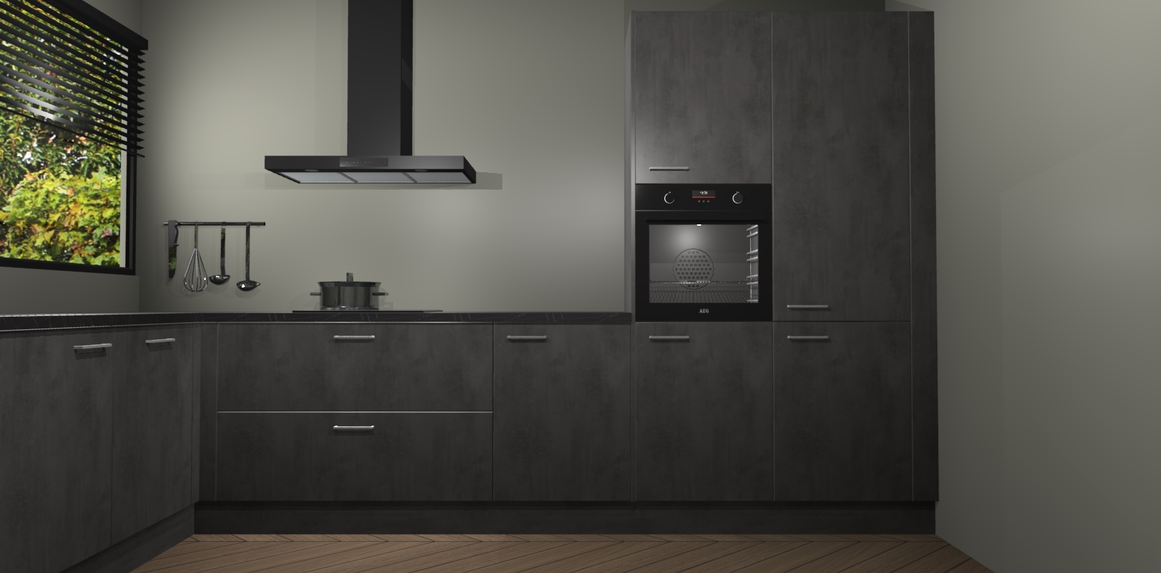 Met een modern, tijdloos design en ruime opslagruimte, zult u zich in no-time thuis voelen in uw nieuwe keuken. Uw leven wordt eenvoudiger met de soft-close deuren die voor het ultieme stille comfort zorgen - geen geluid dat u stoort terwijl u kookt. Ook is de keuken voorzien van 5 ingebouwde apparaten: een oven, inductie kookplaat, afzuigkap, vaatwasser en koelkast. Deze kunnen gemakkelijk na bestelling worden bijgewerkt naar AEG - waardoor uw luxe ervaring compleet is.