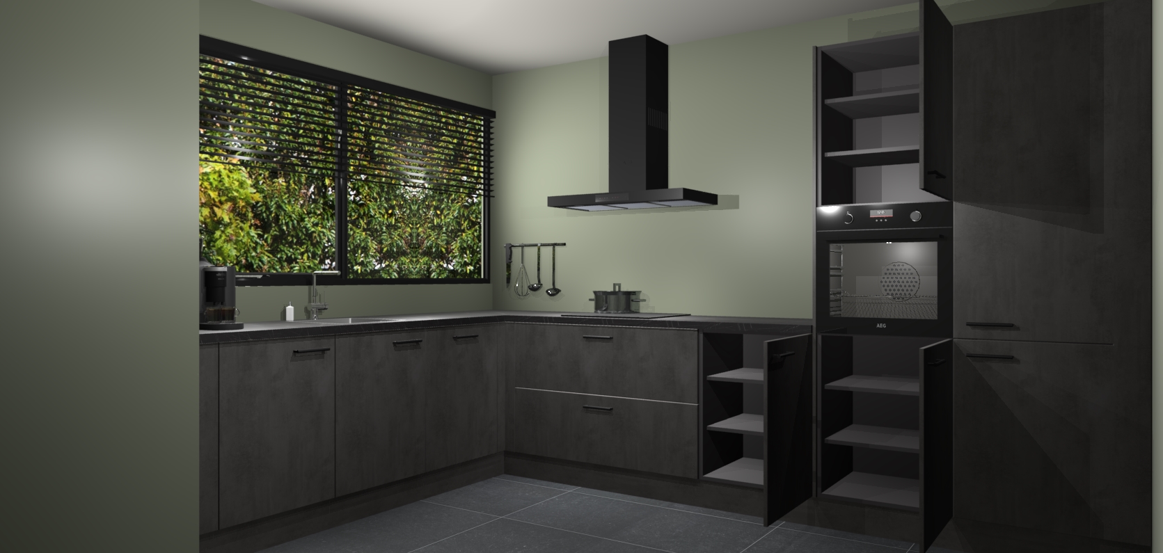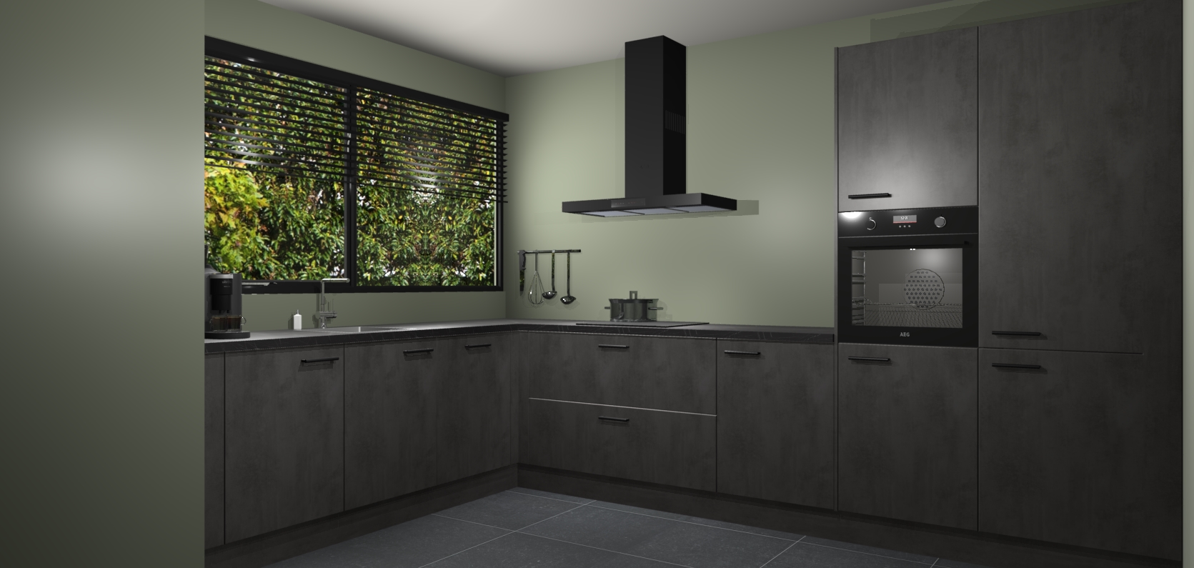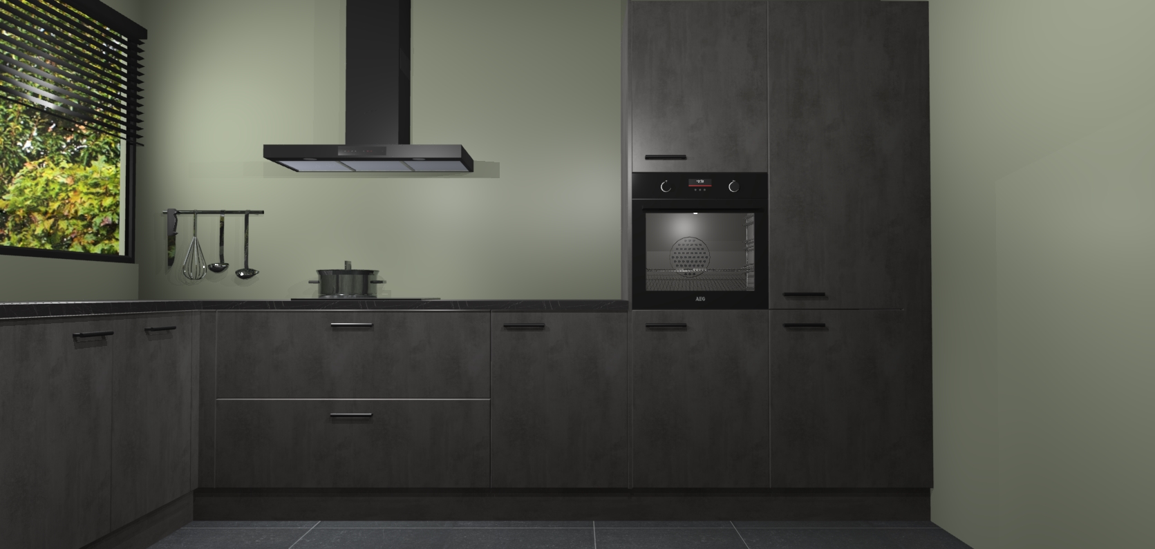 Wij presenteren de revolutie in keukens: de Beton Antraciet keuken Rhodos. Met modern design, een tijdloos uiterlijk en kasten die al voor gemonteerd worden geleverd, laat deze stijlvolle keuken uw kookervaring op een hele nieuwe manier transformeren.