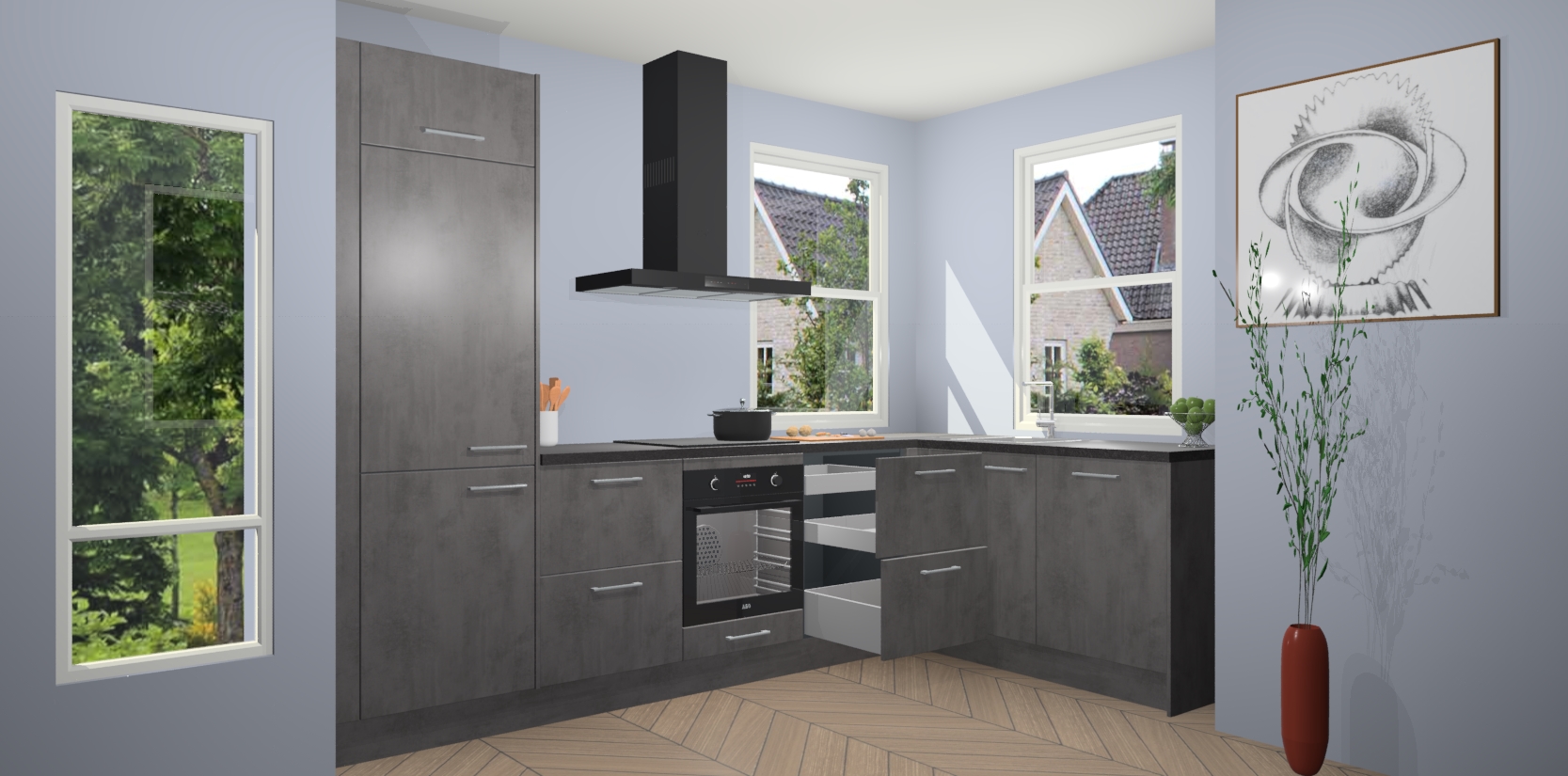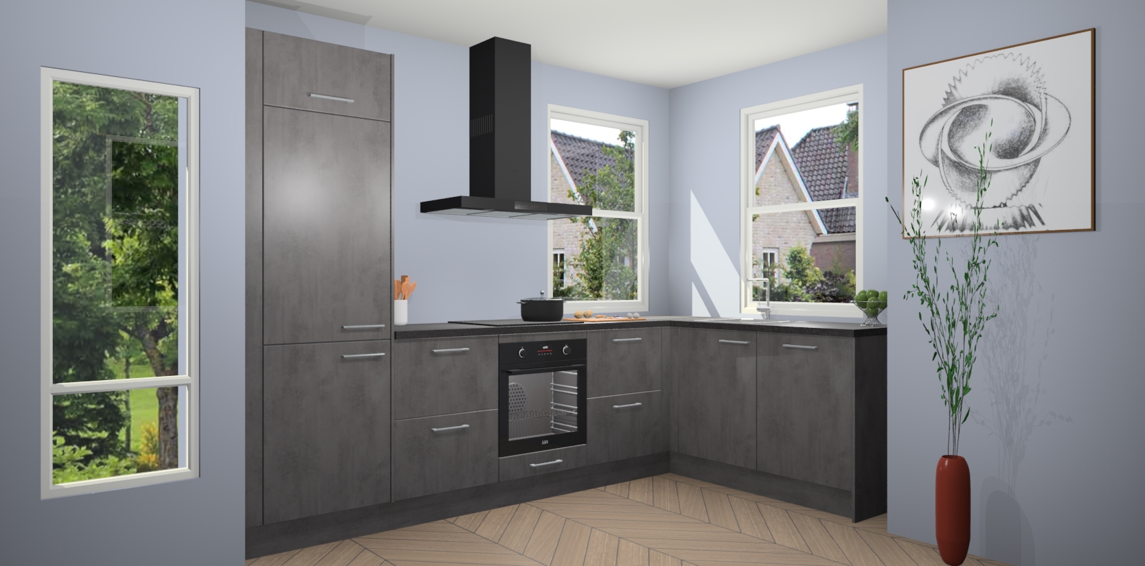 Welkom bij de Beton Antraciet keuken Salzburg! Met een chique combinatie van een prachtig houten werkblad, klassiek design en altijd concurrerende prijzen is de Beton Antraciet keuken Salzburg de keuken van uw dromen! Deze keuken is perfect voor alle huisformaten en decorstijlen en straalt stijl en verfijning uit. Van het tijdloze design tot de functionele functies, er is geen betere manier om de look van uw woon- of kookruimte te verbeteren.