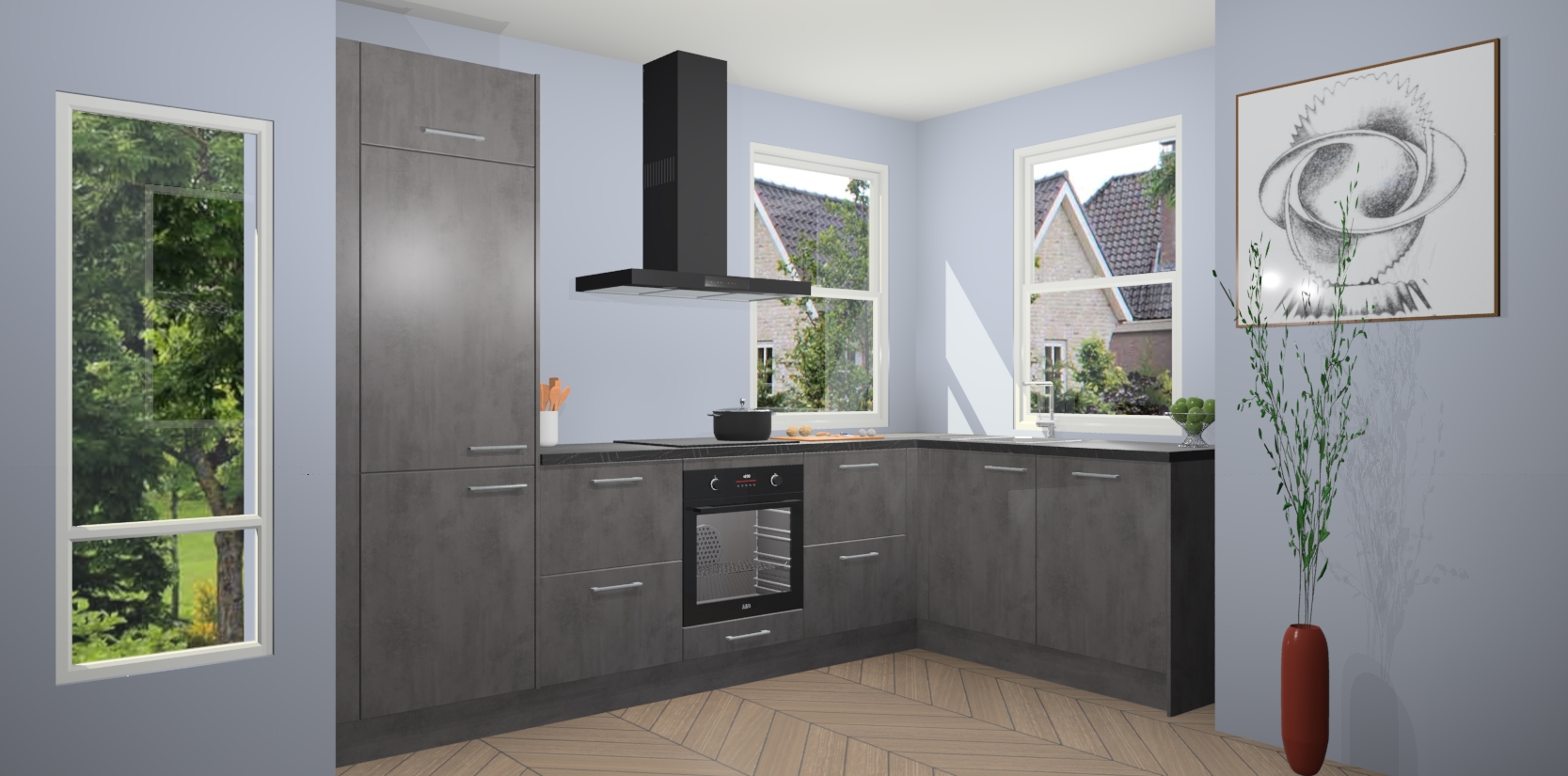 Welkom bij de Beton Antraciet keuken Salzburg! Met een chique combinatie van een prachtig houten werkblad, klassiek design en altijd concurrerende prijzen is de Beton Antraciet keuken Salzburg de keuken van uw dromen! Deze keuken is perfect voor alle huisformaten en decorstijlen en straalt stijl en verfijning uit. Van het tijdloze design tot de functionele functies, er is geen betere manier om de look van uw woon- of kookruimte te verbeteren.
