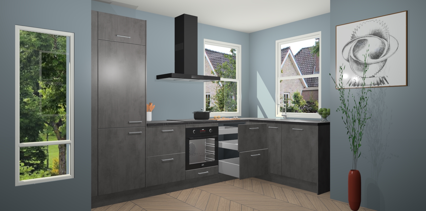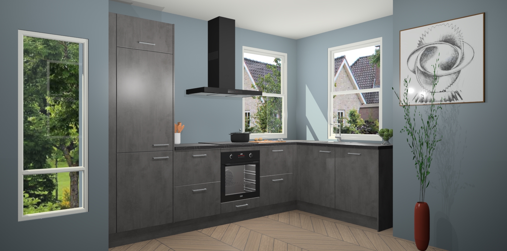 Welkom bij de Beton Antraciet keuken Salzburg! Met een chique combinatie van een prachtig houten werkblad, klassiek design en altijd concurrerende prijzen is de Beton Antraciet keuken Salzburg de keuken van uw dromen! Deze keuken is perfect voor alle huisformaten en decorstijlen en straalt stijl en verfijning uit. Van het tijdloze design tot de functionele functies, er is geen betere manier om de look van uw woon- of kookruimte te verbeteren.