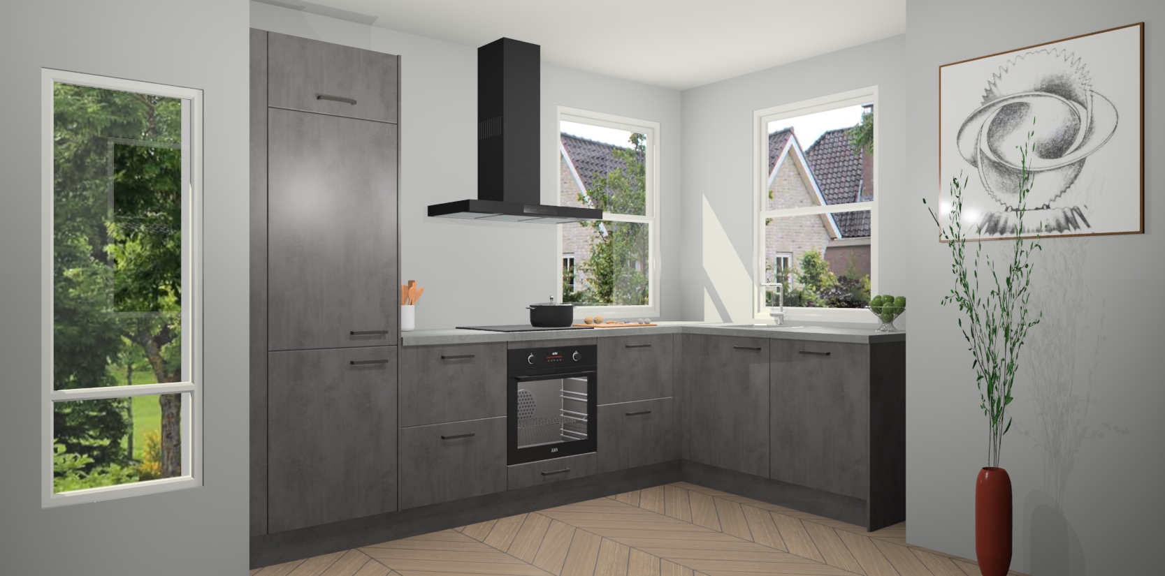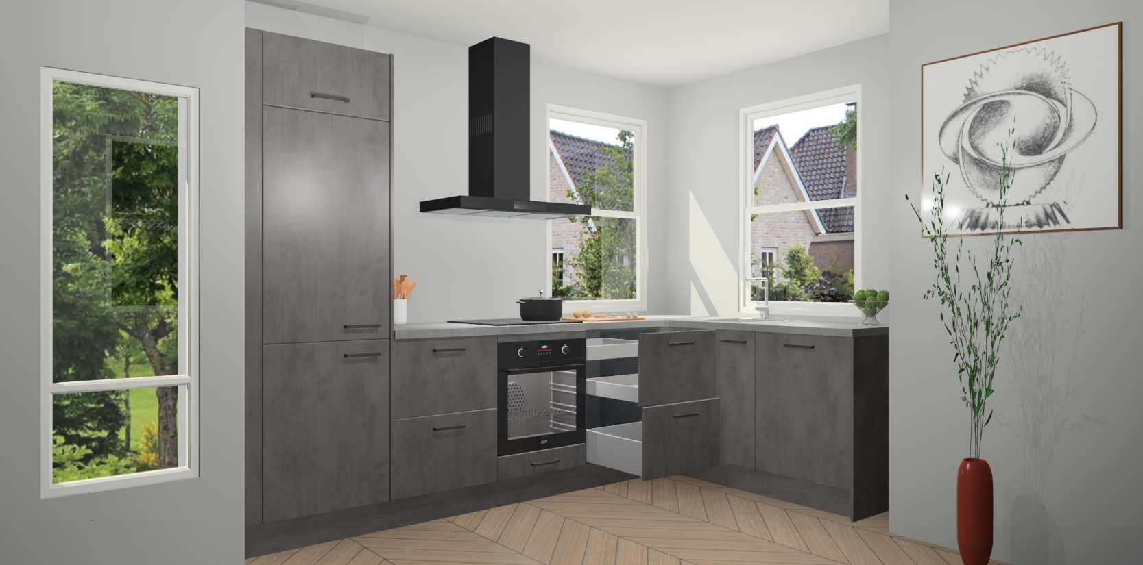 Welkom bij de Beton Antraciet keuken Salzburg! Met een chique combinatie van een prachtig houten werkblad, klassiek design en altijd concurrerende prijzen is de Beton Antraciet keuken Salzburg de keuken van uw dromen! Deze keuken is perfect voor alle huisformaten en decorstijlen en straalt stijl en verfijning uit. Van het tijdloze design tot de functionele functies, er is geen betere manier om de look van uw woon- of kookruimte te verbeteren.