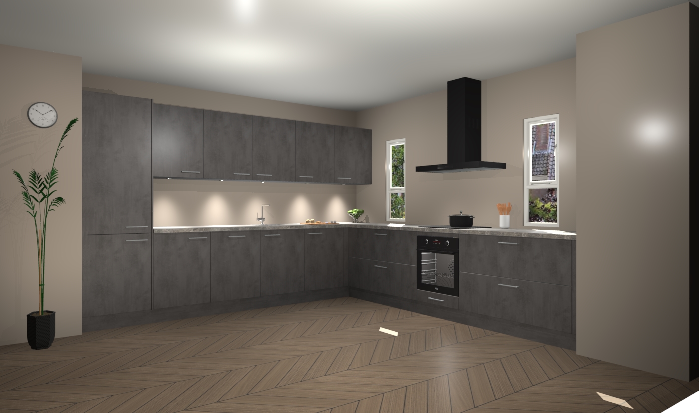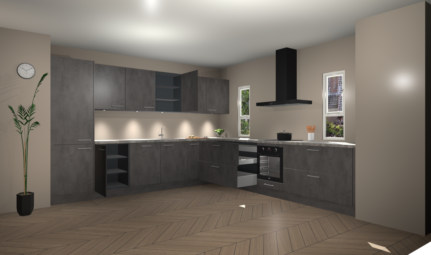 De beton antraciet keuken is een ideale hoekkeuken en heeft alle functies en apparatuur die u maar nodig kunt hebben. Bij de bestelling krijgt u een oven, inductiekookplaat, afzuigkap, vaatwasser en koelkast - deze kunnen desgewenst eenvoudig worden uitgebreid naar AEG na bestellen. Elke kast wordt ook voor gemonteerd geleverd met soft close deuren die jarenlang gebruik beloven. Stelt u zich voor dat u geen gedoe heeft met vervelende montage - vanaf het moment dat u uw bestelling plaats, duurt het slechts 7 weken voor het bij u thuis geleverd wordt.