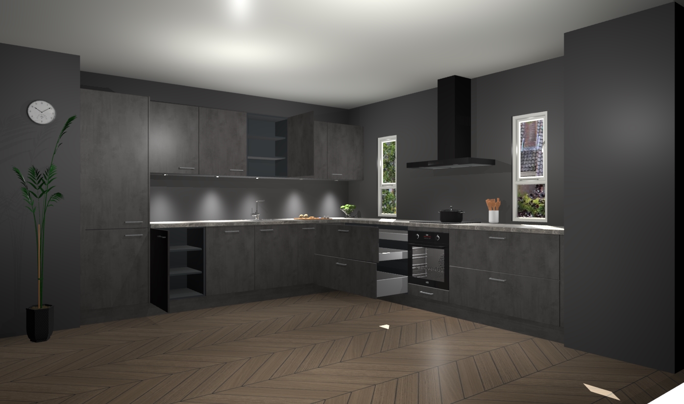 De beton antraciet keuken is een ideale hoekkeuken en heeft alle functies en apparatuur die u maar nodig kunt hebben. Bij de bestelling krijgt u een oven, inductiekookplaat, afzuigkap, vaatwasser en koelkast - deze kunnen desgewenst eenvoudig worden uitgebreid naar AEG na bestellen. Elke kast wordt ook voor gemonteerd geleverd met soft close deuren die jarenlang gebruik beloven. Stelt u zich voor dat u geen gedoe heeft met vervelende montage - vanaf het moment dat u uw bestelling plaats, duurt het slechts 7 weken voor het bij u thuis geleverd wordt.