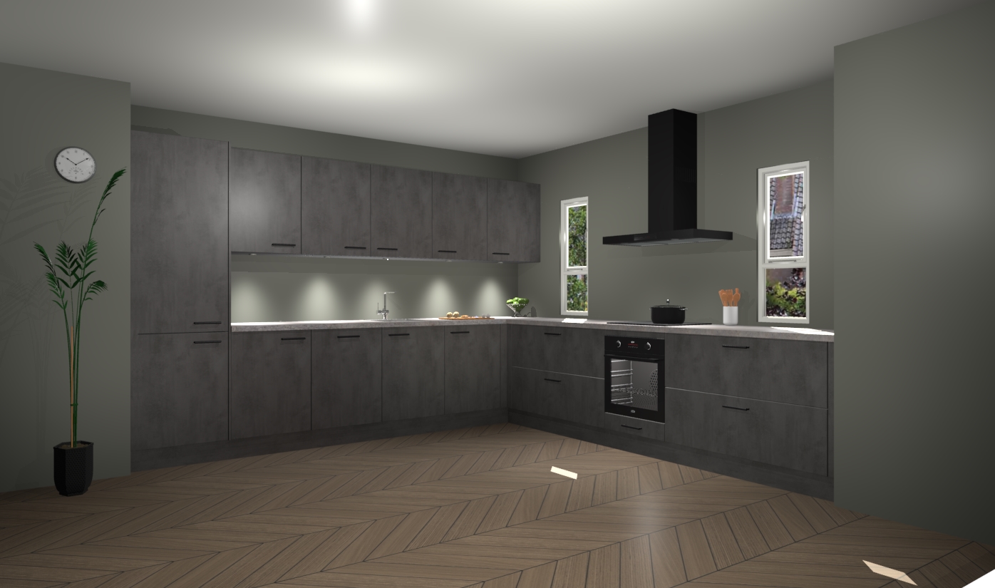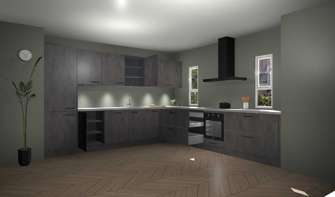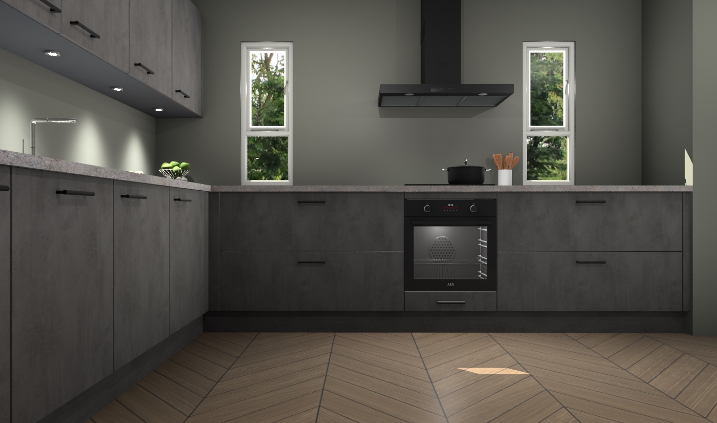 De beton antraciet keuken is een ideale hoekkeuken en heeft alle functies en apparatuur die u maar nodig kunt hebben. Bij de bestelling krijgt u een oven, inductiekookplaat, afzuigkap, vaatwasser en koelkast - deze kunnen desgewenst eenvoudig worden uitgebreid naar AEG na bestellen. Elke kast wordt ook voor gemonteerd geleverd met soft close deuren die jarenlang gebruik beloven. Stelt u zich voor dat u geen gedoe heeft met vervelende montage - vanaf het moment dat u uw bestelling plaats, duurt het slechts 7 weken voor het bij u thuis geleverd wordt.