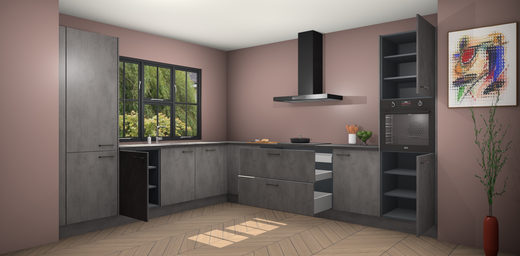 Voeg daar ons vaste lage prijskaartje aan toe en je hebt het perfecte pakket - dus waarom wachten? Haal uw beton antraciet keuken Tychy vandaag nog in huis voor een betaalbare manier om uw keuken zowel mooi als functioneel te maken.
