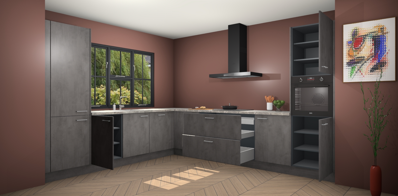 Voeg daar ons vaste lage prijskaartje aan toe en je hebt het perfecte pakket - dus waarom wachten? Haal uw beton antraciet keuken Tychy vandaag nog in huis voor een betaalbare manier om uw keuken zowel mooi als functioneel te maken.