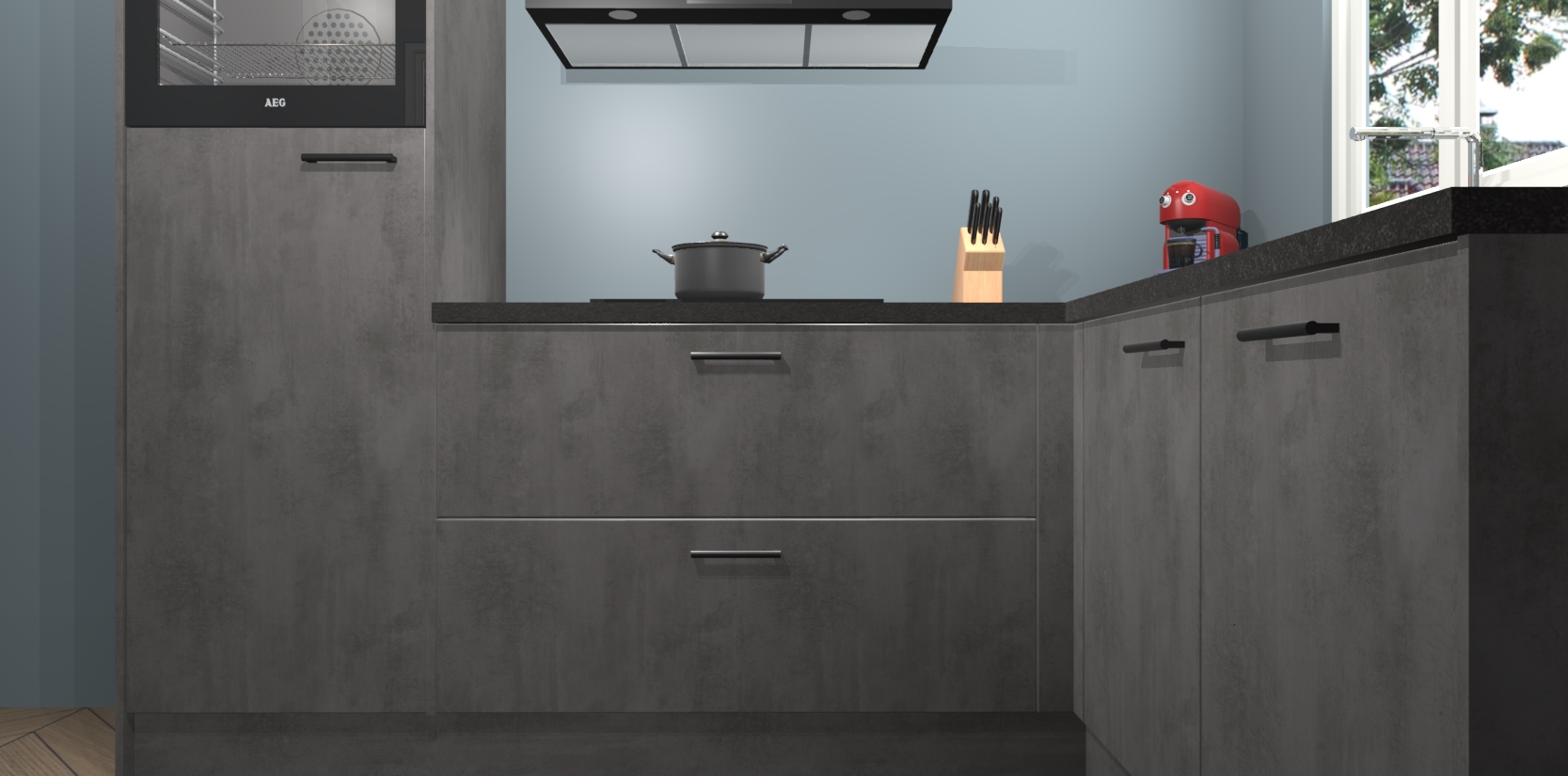 Bestellen was nog nooit zo makkelijk en we leveren met slechts 7 weken; zodra de keuken arriveert staan de kasten voor gemonteerd klaar om er alles aan te doen dat u hem gemakkelijk zelf kunt installeren! Eén ding is zeker: met de Beton Antraciet keuken Victoria slaagt u erin modischer, modernere keukens uit te rusten die tientallen jaren meegaan! Haal snel uw Beton Antraciet keuken Victoria - of u nu net begint of al 'levenservaring' hebt in de keukendroomloopbaan - want dit topmodel van onze collectie wilt u absoluut niet missen.
