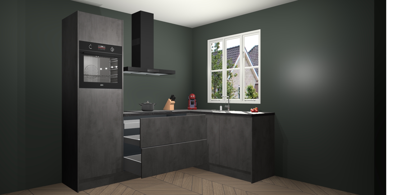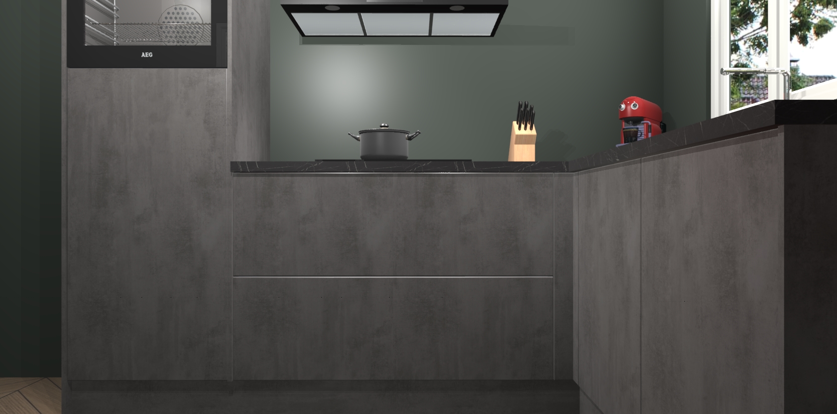 Dit model biedt u voldoende opbergruimte en vijf ingebouwde apparaten: een oven, inductiekookplaat, afzuigkap, vaatwasser en koelkast. Deze apparaten kunnen gemakkelijk worden geüpgrade naar AEG nadat u besteld heeft. De verschillende laden en kastjes bevatten softclose-deuren waardoor ze gezellig dichtvallen met een geruststellend helemaal geruisloos geluid. En dat is nog niet alles! We garanderen ook dat de prijs altijd laag blijft - dus haal nu uw Beton Antraciet keuken Victoria terwijl het kan.