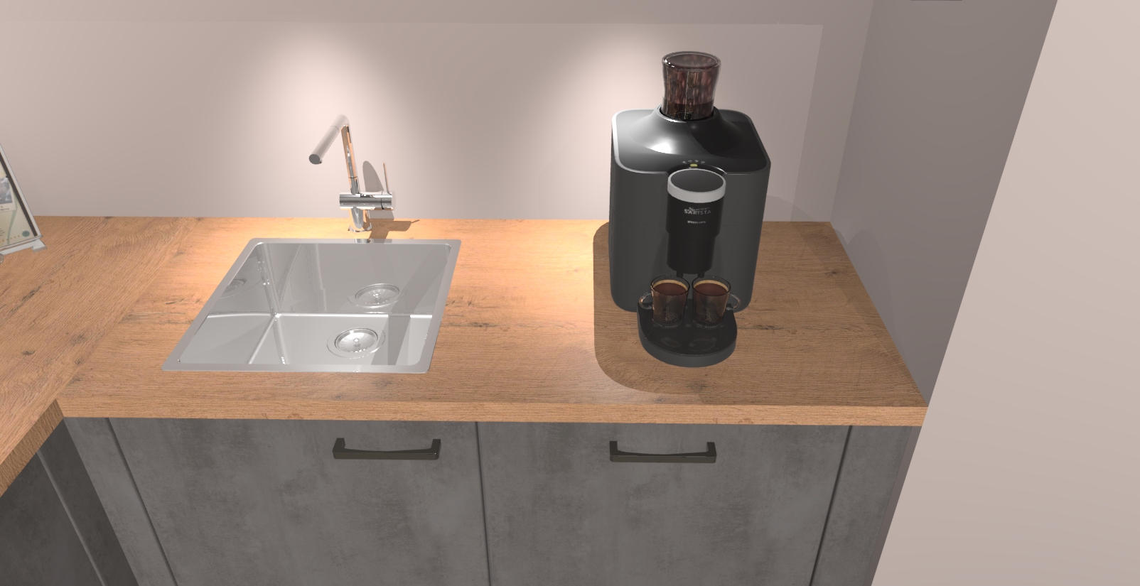 - De spoelbak is nog niet in gevreesd. Dit dient tijdens het werk gedaan te worden