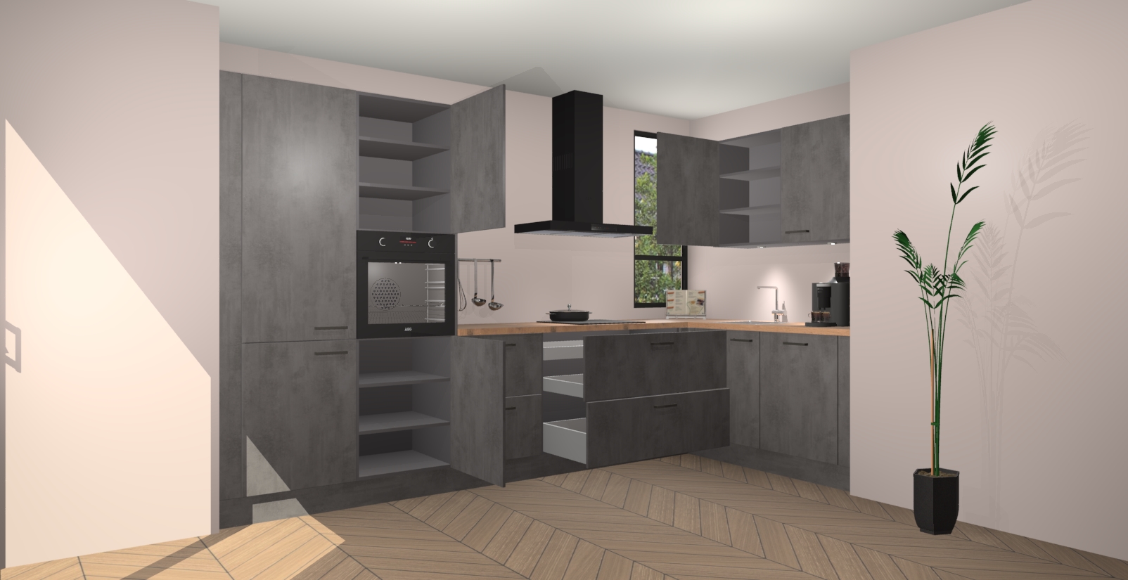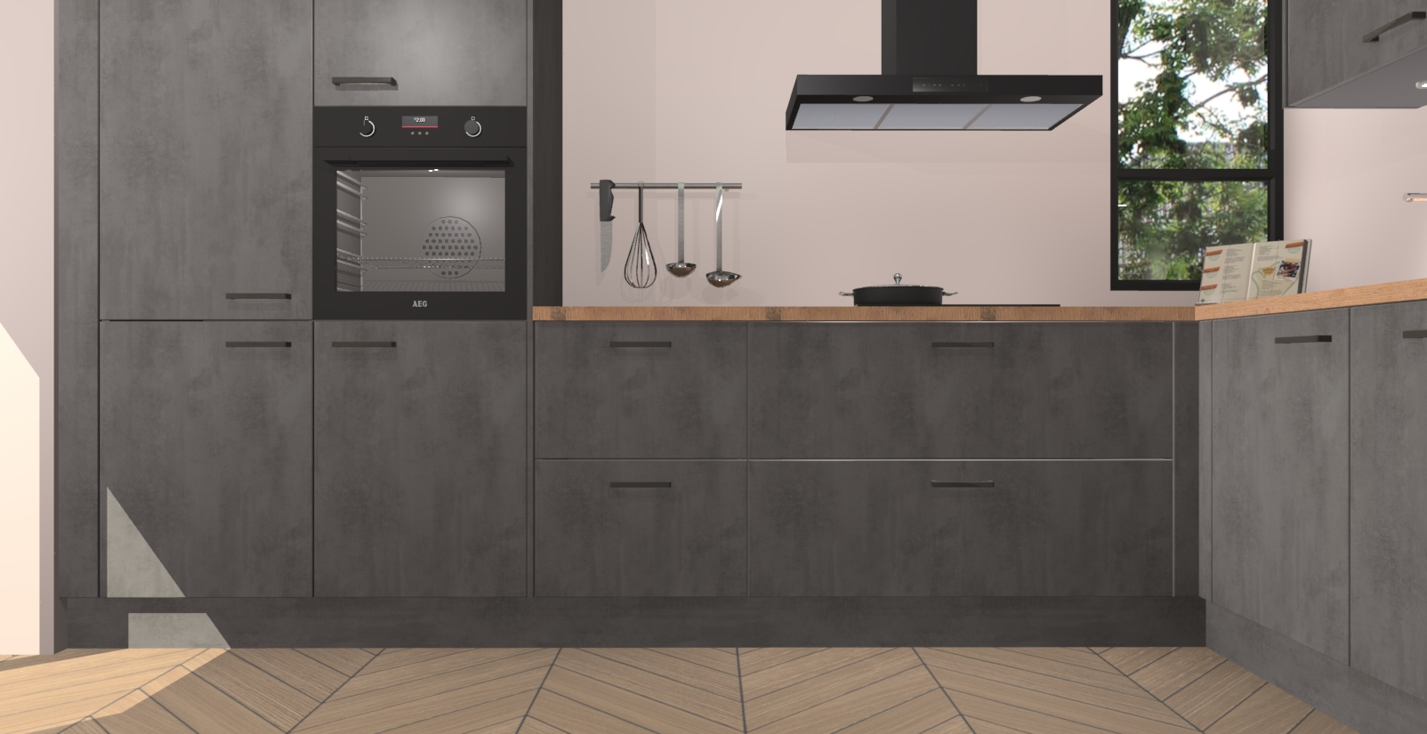 Welkom in uw nieuwe moderne keuken! Laat ons u voorstellen aan de Beton Antraciet keuken Vlaanderen . Deze prachtige hoekkeuken straalt exclusiviteit en luxe uit als geen ander. Het strakke design, de tijdloze kleuren en het model maken van deze keuken een moderne klassieker. En met voldoende opbergruimte heeft deze keuken echt voor ieder wat wils.
