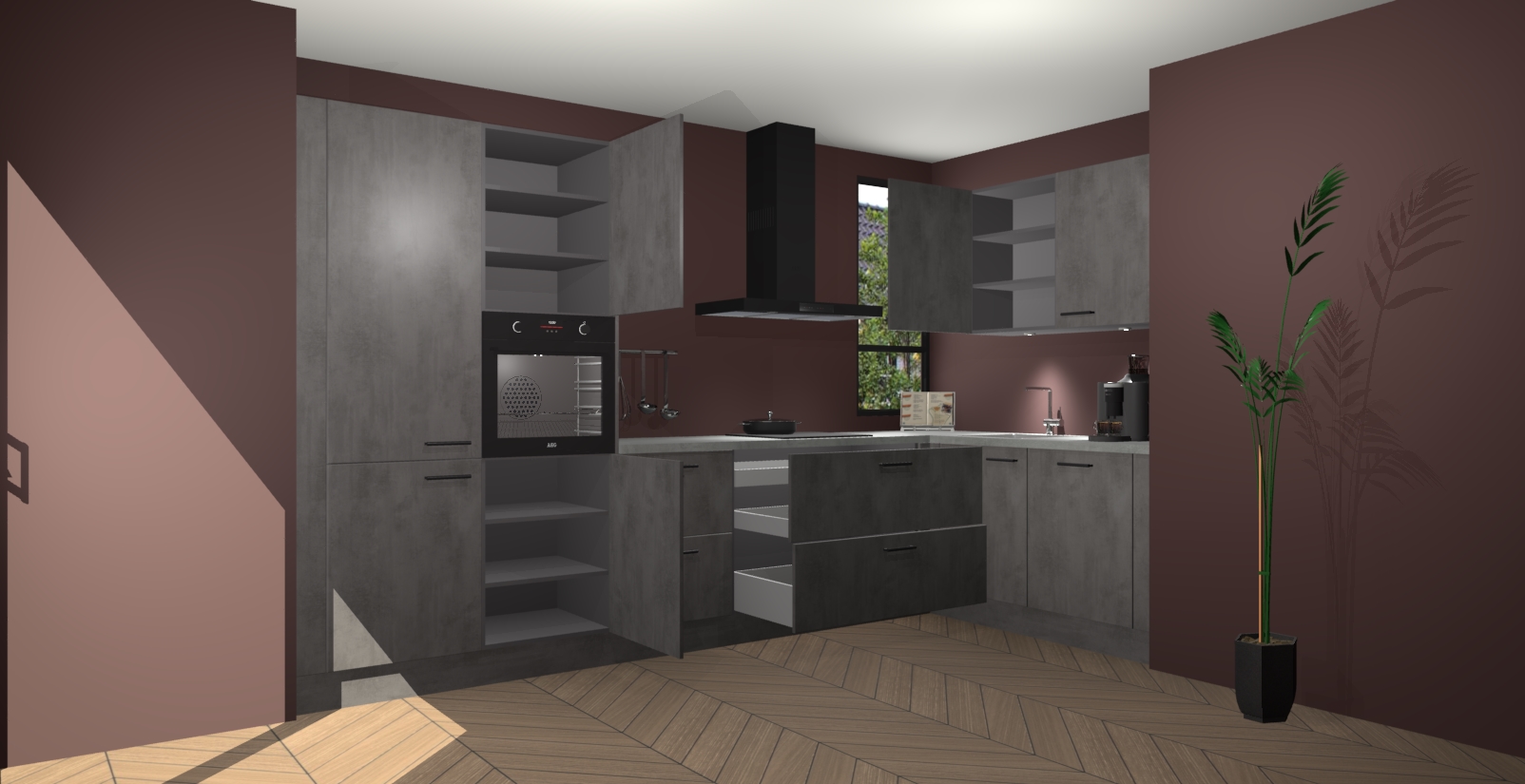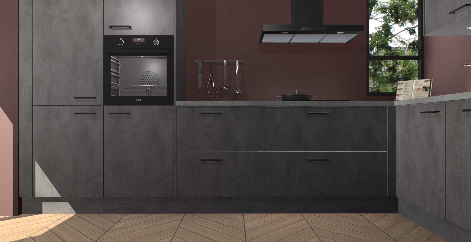Welkom in uw nieuwe moderne keuken! Laat ons u voorstellen aan de Beton Antraciet keuken Vlaanderen . Deze prachtige hoekkeuken straalt exclusiviteit en luxe uit als geen ander. Het strakke design, de tijdloze kleuren en het model maken van deze keuken een moderne klassieker. En met voldoende opbergruimte heeft deze keuken echt voor ieder wat wils.