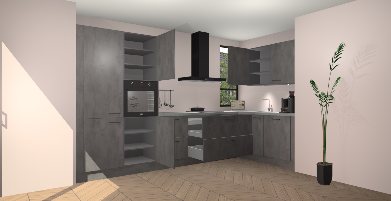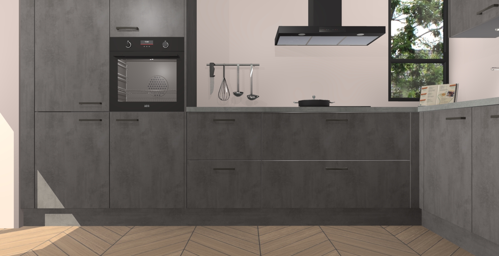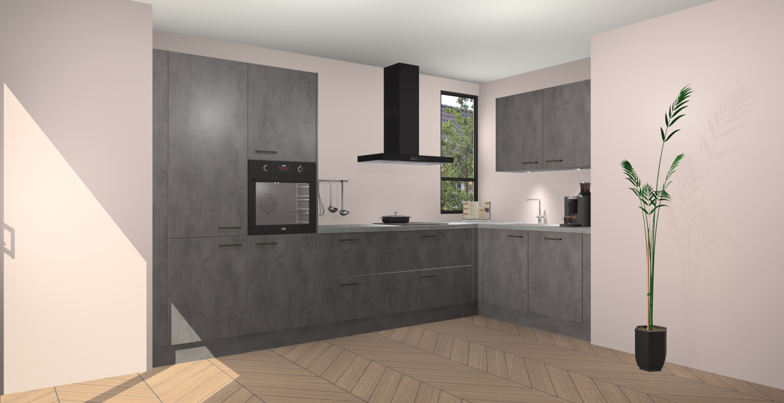 Welkom in uw nieuwe moderne keuken! Laat ons u voorstellen aan de Beton Antraciet keuken Vlaanderen . Deze prachtige hoekkeuken straalt exclusiviteit en luxe uit als geen ander. Het strakke design, de tijdloze kleuren en het model maken van deze keuken een moderne klassieker. En met voldoende opbergruimte heeft deze keuken echt voor ieder wat wils.