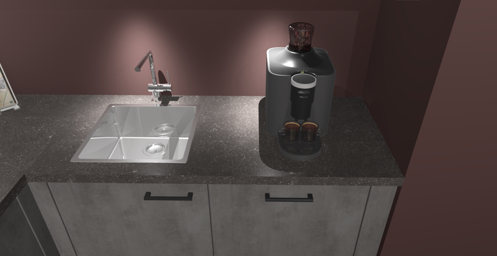 - De spoelbak is nog niet in gevreesd. Dit dient tijdens het werk gedaan te worden