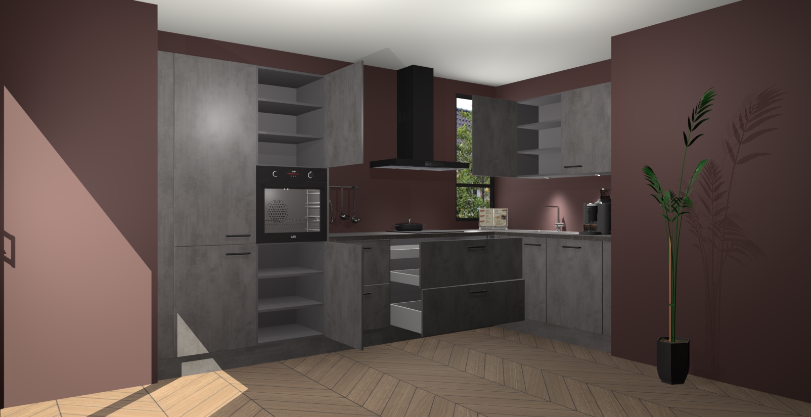Welkom in uw nieuwe moderne keuken! Laat ons u voorstellen aan de Beton Antraciet keuken Vlaanderen . Deze prachtige hoekkeuken straalt exclusiviteit en luxe uit als geen ander. Het strakke design, de tijdloze kleuren en het model maken van deze keuken een moderne klassieker. En met voldoende opbergruimte heeft deze keuken echt voor ieder wat wils.