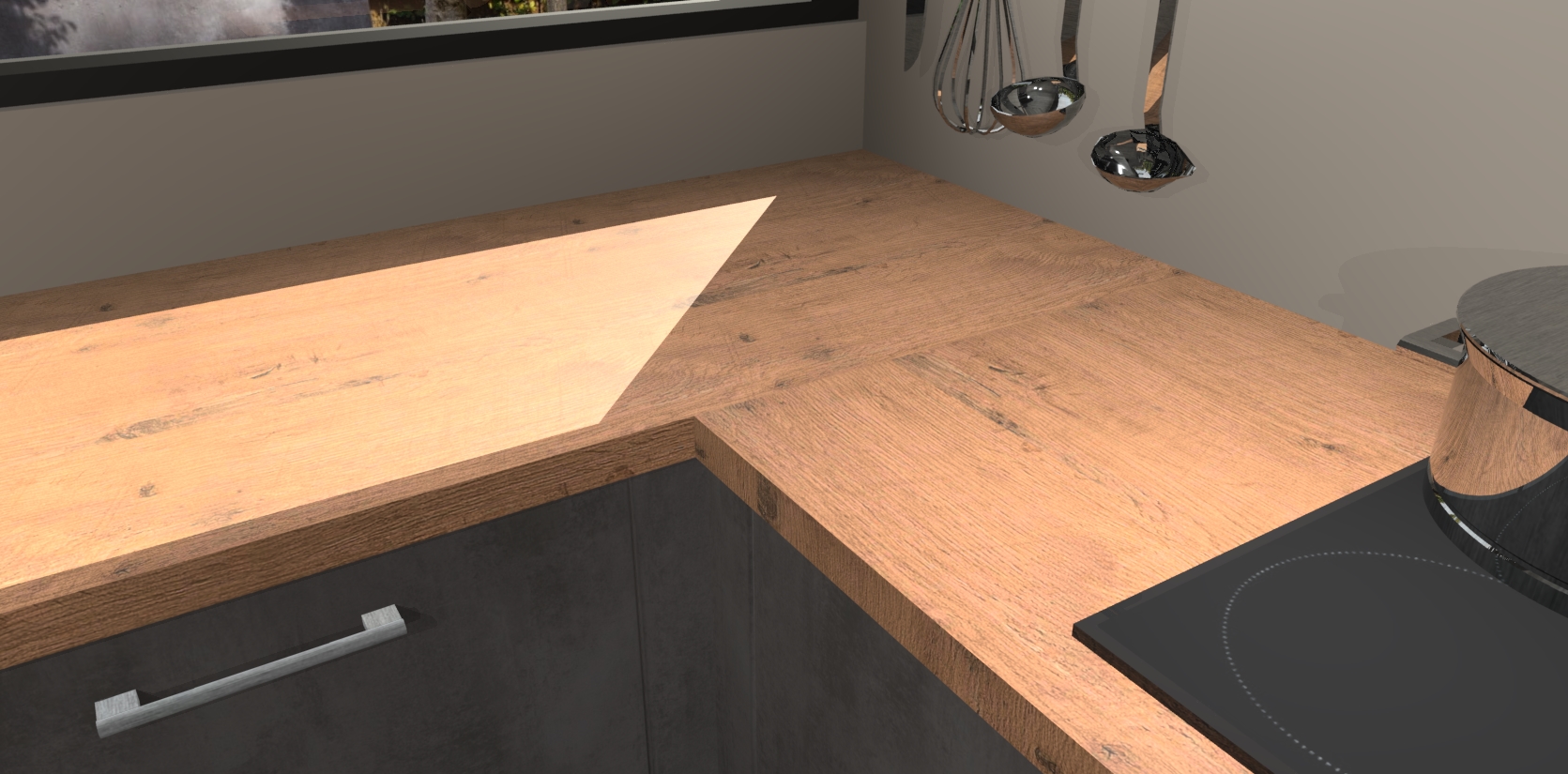 - Bij een hoekwerkblad zijn de hoeken in gevreesd en op maat gemaakt