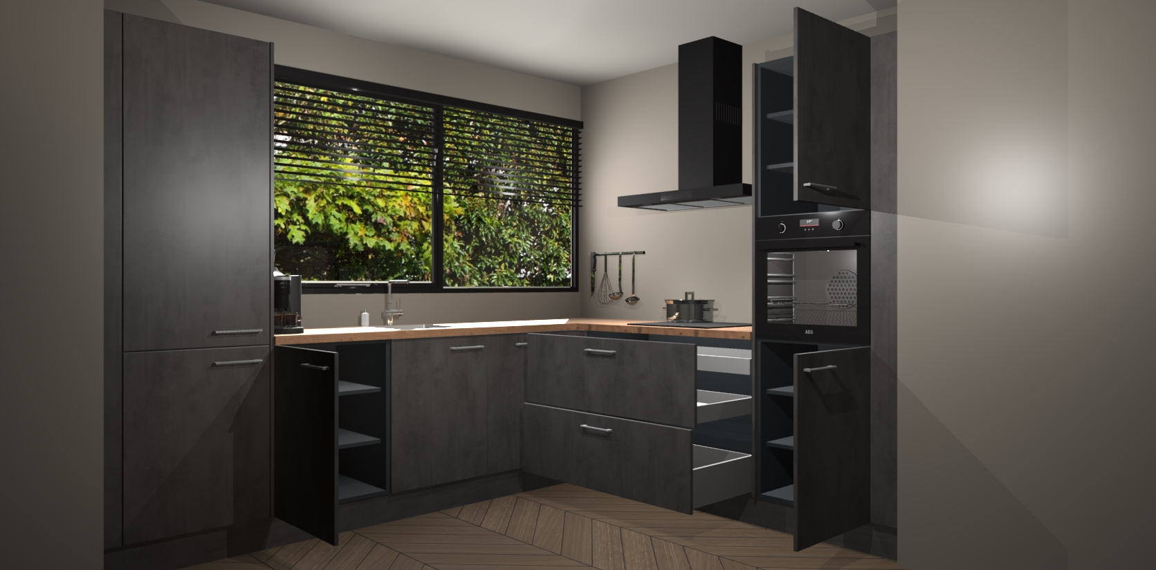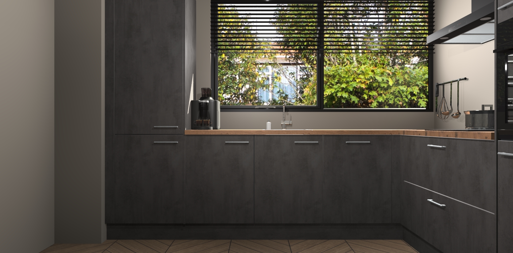 Wij presenteren de revolutie in keukens: de beton antraciet keuken Vogar. Met modern design, een tijdloos uiterlijk en kasten die al voor gemonteerd worden geleverd, laat deze stijlvolle keuken uw kookervaring op een hele nieuwe manier transformeren.