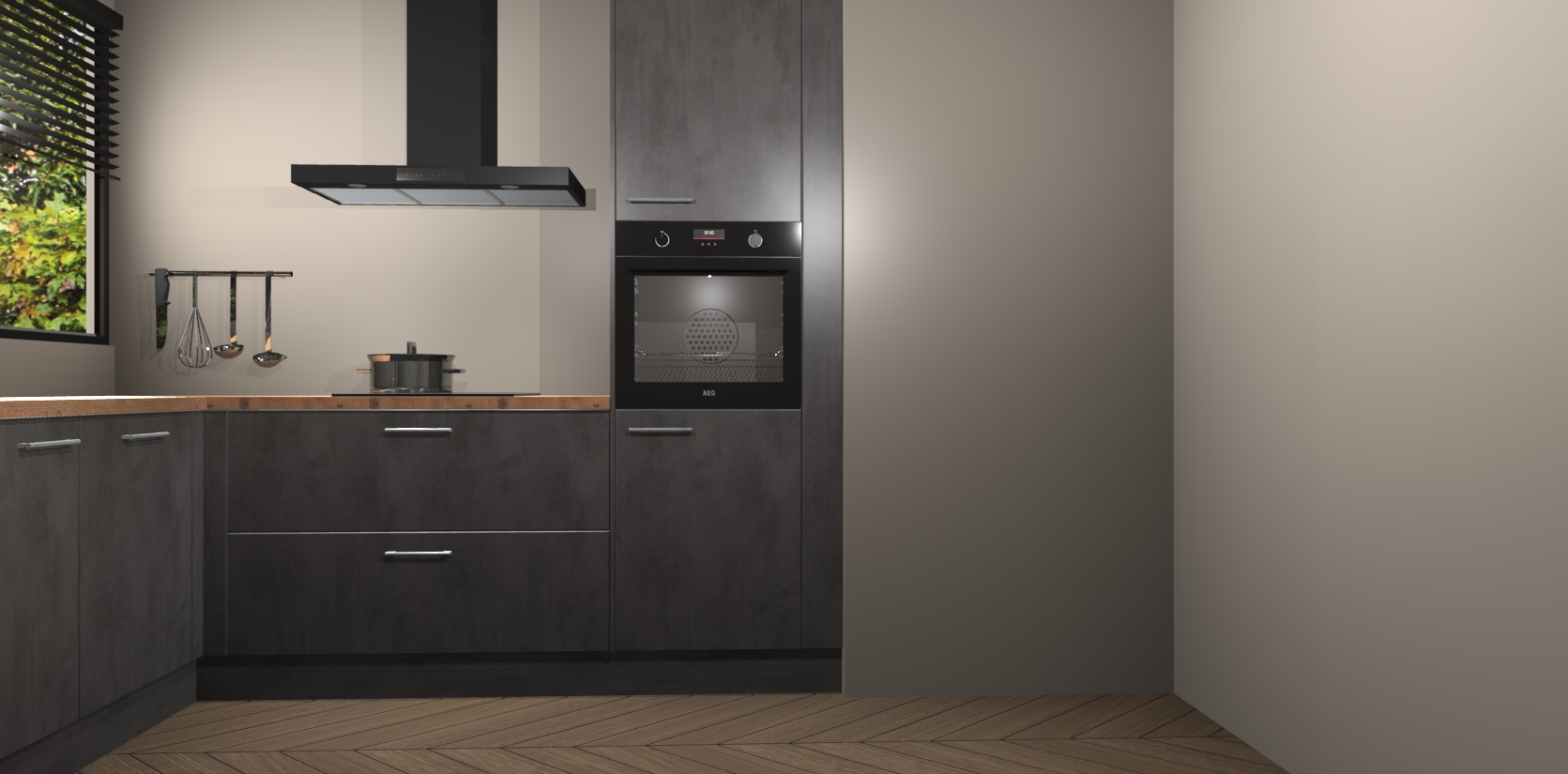 Met een modern, tijdloos design en ruime opslagruimte, zult u zich in no-time thuis voelen in uw nieuwe keuken. Uw leven wordt eenvoudiger met de soft-close deuren die voor het ultieme stille comfort zorgen - geen geluid dat u stoort terwijl u kookt. Ook is de keuken voorzien van 5 ingebouwde apparaten: een oven, inductie kookplaat, afzuigkap, vaatwasser en koelkast. Deze kunnen gemakkelijk na bestelling worden bijgewerkt naar AEG - waardoor uw luxe ervaring compleet is.