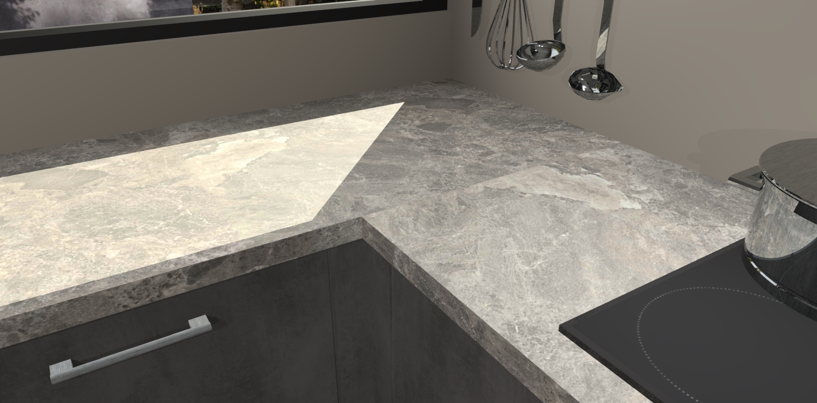 - Bij een hoekwerkblad zijn de hoeken in gevreesd en op maat gemaakt