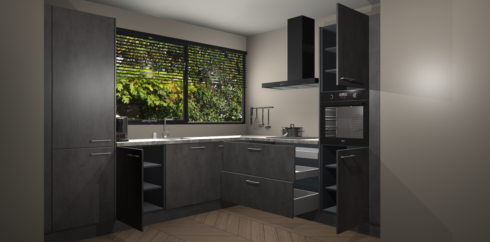 Wij presenteren de revolutie in keukens: de beton antraciet keuken Vogar. Met modern design, een tijdloos uiterlijk en kasten die al voor gemonteerd worden geleverd, laat deze stijlvolle keuken uw kookervaring op een hele nieuwe manier transformeren.