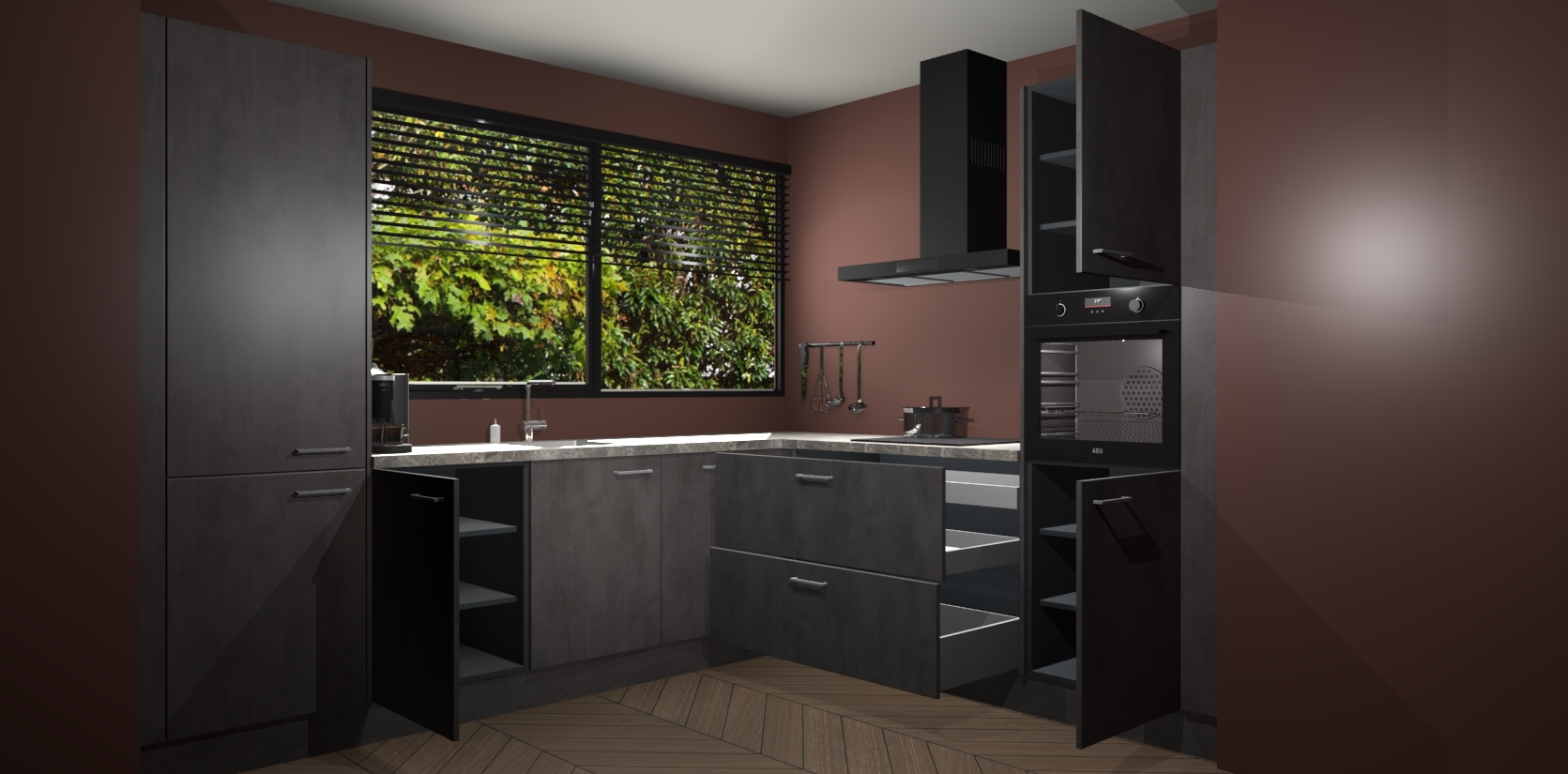 Wij presenteren de revolutie in keukens: de beton antraciet keuken Vogar. Met modern design, een tijdloos uiterlijk en kasten die al voor gemonteerd worden geleverd, laat deze stijlvolle keuken uw kookervaring op een hele nieuwe manier transformeren.