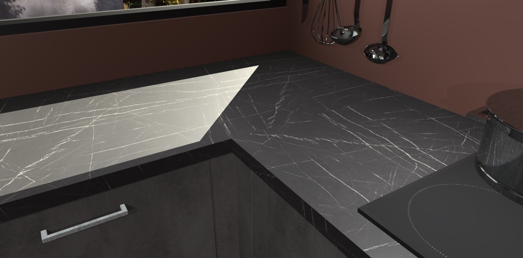 - Bij een hoekwerkblad zijn de hoeken in gevreesd en op maat gemaakt