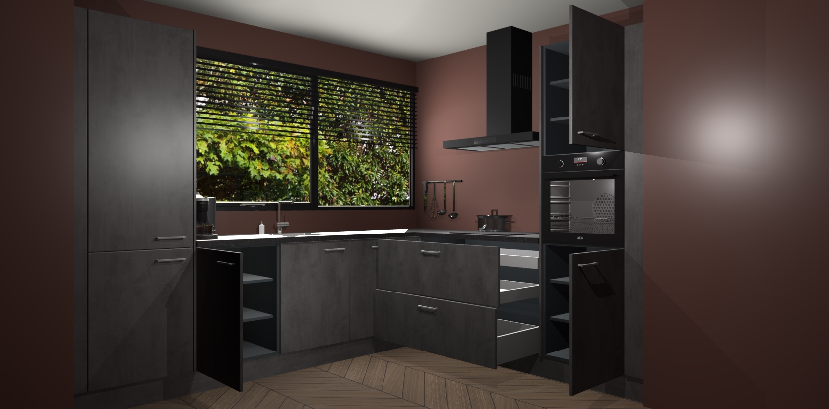 Wij presenteren de revolutie in keukens: de beton antraciet keuken Vogar. Met modern design, een tijdloos uiterlijk en kasten die al voor gemonteerd worden geleverd, laat deze stijlvolle keuken uw kookervaring op een hele nieuwe manier transformeren.