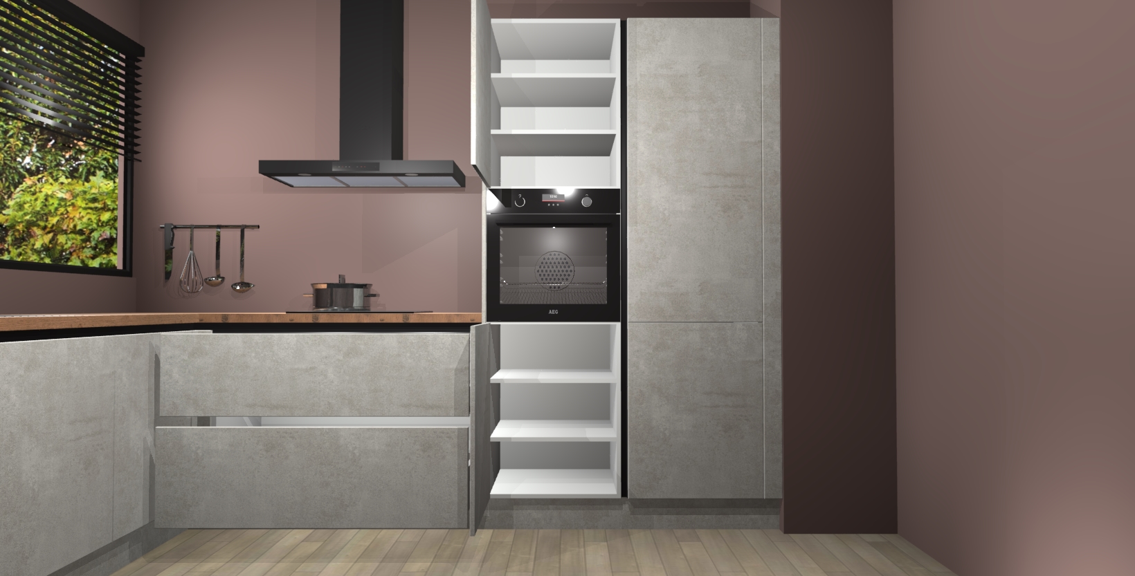 Met een modern, tijdloos design en ruime opslagruimte, zult u zich in no-time thuis voelen in uw nieuwe keuken. Uw leven wordt eenvoudiger met de soft-close deuren die voor het ultieme stille comfort zorgen - geen geluid dat u stoort terwijl u kookt. Ook is de keuken voorzien van 5 ingebouwde apparaten: een oven, inductie kookplaat, afzuigkap, vaatwasser en koelkast. Deze kunnen gemakkelijk na bestelling worden bijgewerkt naar AEG - waardoor uw luxe ervaring compleet is.
