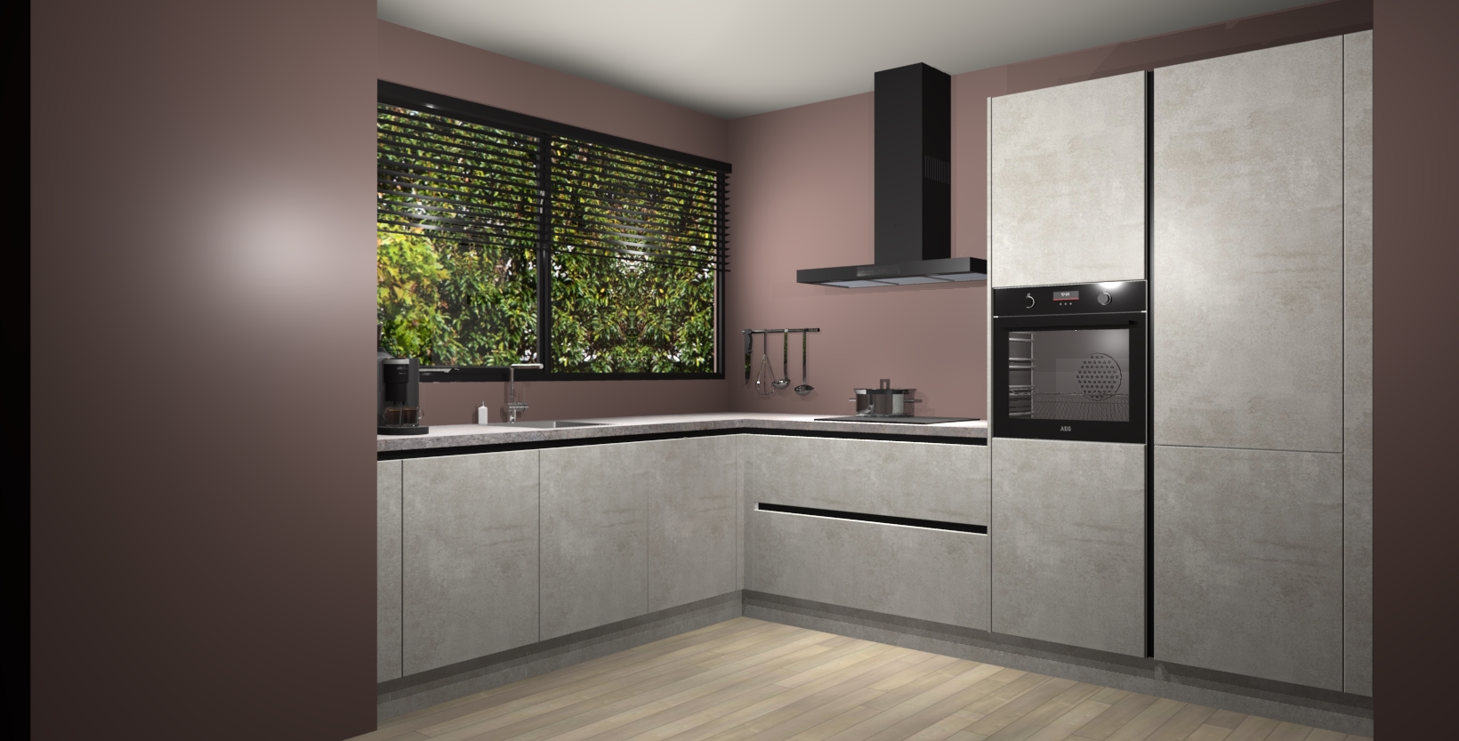 Met een modern, tijdloos design en ruime opslagruimte, zult u zich in no-time thuis voelen in uw nieuwe keuken. Uw leven wordt eenvoudiger met de soft-close deuren die voor het ultieme stille comfort zorgen - geen geluid dat u stoort terwijl u kookt. Ook is de keuken voorzien van 5 ingebouwde apparaten: een oven, inductie kookplaat, afzuigkap, vaatwasser en koelkast. Deze kunnen gemakkelijk na bestelling worden bijgewerkt naar AEG - waardoor uw luxe ervaring compleet is.