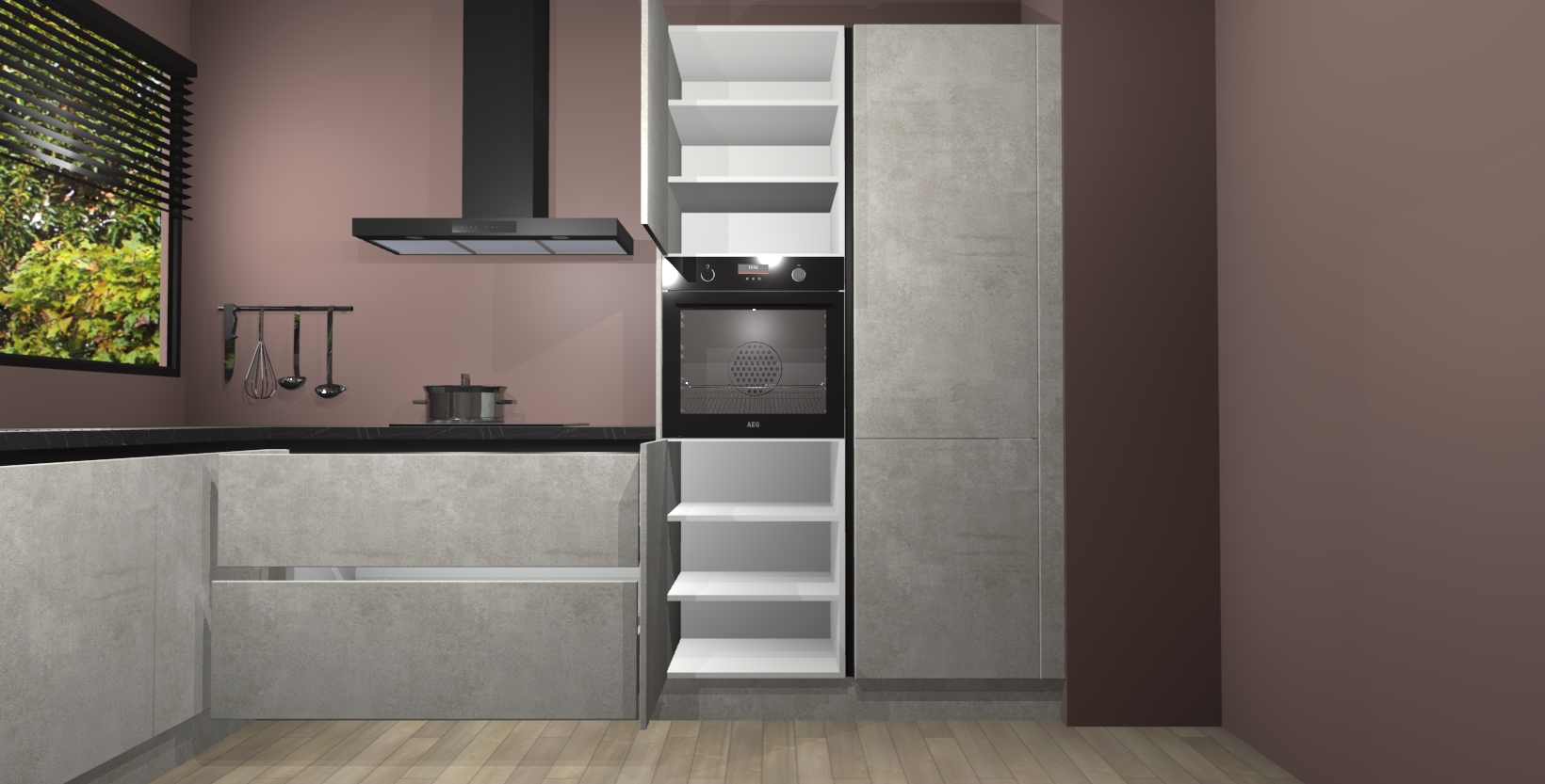 Met een modern, tijdloos design en ruime opslagruimte, zult u zich in no-time thuis voelen in uw nieuwe keuken. Uw leven wordt eenvoudiger met de soft-close deuren die voor het ultieme stille comfort zorgen - geen geluid dat u stoort terwijl u kookt. Ook is de keuken voorzien van 5 ingebouwde apparaten: een oven, inductie kookplaat, afzuigkap, vaatwasser en koelkast. Deze kunnen gemakkelijk na bestelling worden bijgewerkt naar AEG - waardoor uw luxe ervaring compleet is.
