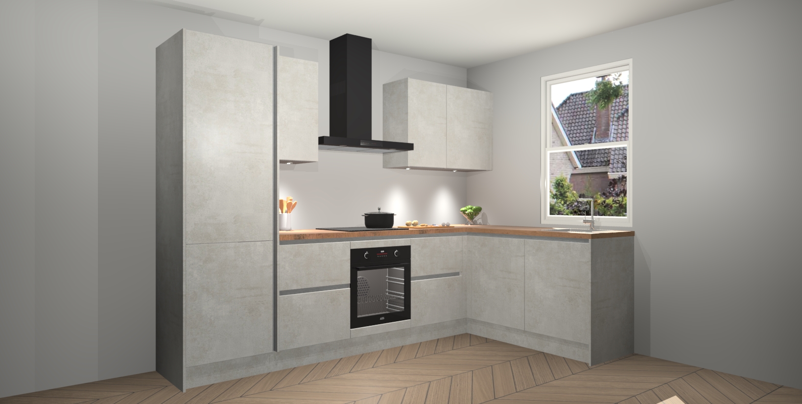 Maak kennis met de trendsettende en luxe Beton Opaal greeploze keuken Bazel! Deze uitzonderlijke keuken van Duitse kwaliteit is stijlvol, modern en perfect om elk huis mee op te fleuren. De binnenkant van de kasten worden meegenomen in een bijpassende kleur om een samenhangende eigentijdse esthetiek te voltooien. U zult dol zijn op hoe uw pas gerenoveerde keuken eruitziet met de Beton Opaal editie!