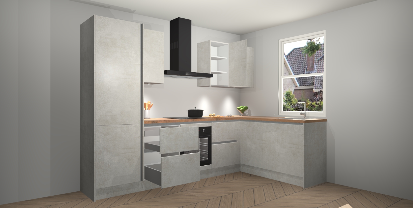 Inclusief plinten, stelpoten en werkblad
