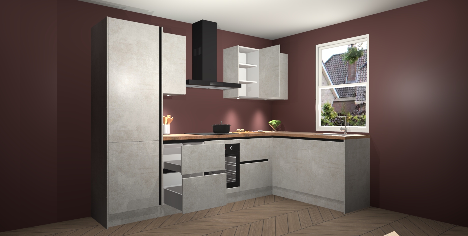 Maak kennis met de trendsettende en luxe Beton Opaal greeploze keuken Bazel! Deze uitzonderlijke keuken van Duitse kwaliteit is stijlvol, modern en perfect om elk huis mee op te fleuren. De binnenkant van de kasten worden meegenomen in een bijpassende kleur om een samenhangende eigentijdse esthetiek te voltooien. U zult dol zijn op hoe uw pas gerenoveerde keuken eruitziet met de Beton Opaal editie!