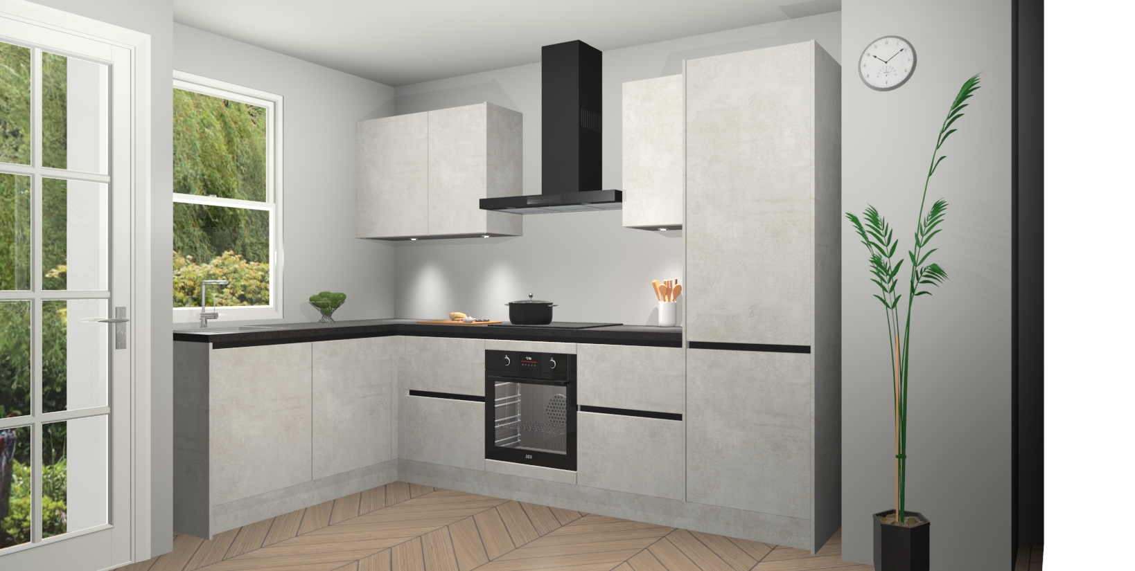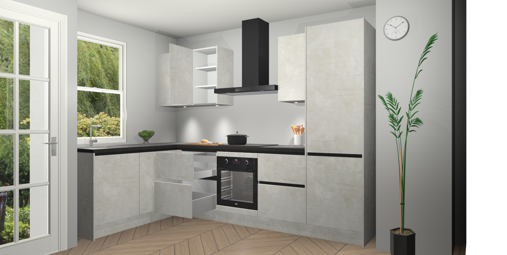 Bent u op zoek naar een strakke, moderne hoekkeuken die uw huis oppept en een moderne uitstraling geeft? Kijk dan niet verder dan de beton opaal greeploze keuken Beijing. Deze verbluffende hoekkeuken tilt hedendaags design naar een hoger niveau. Qua stijl is deze chique hoekkeuken voorzien van beton opaal accenten, om een strakke maar opvallende look te creëren. De binnenkant van de kasten is afgewerkt in dezelfde prachtige beton opaal kleur voor extra esthetische aantrekkingskracht.