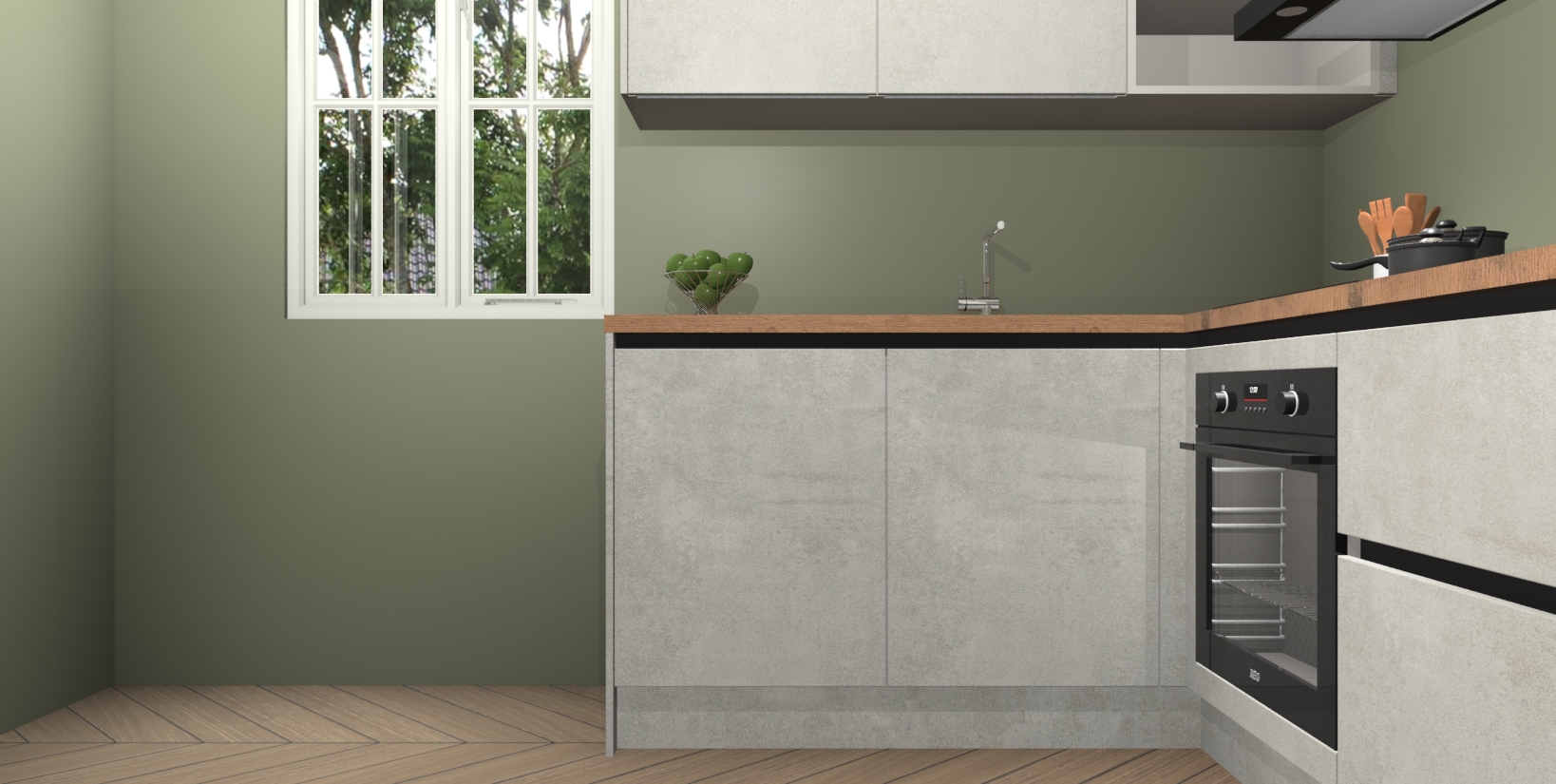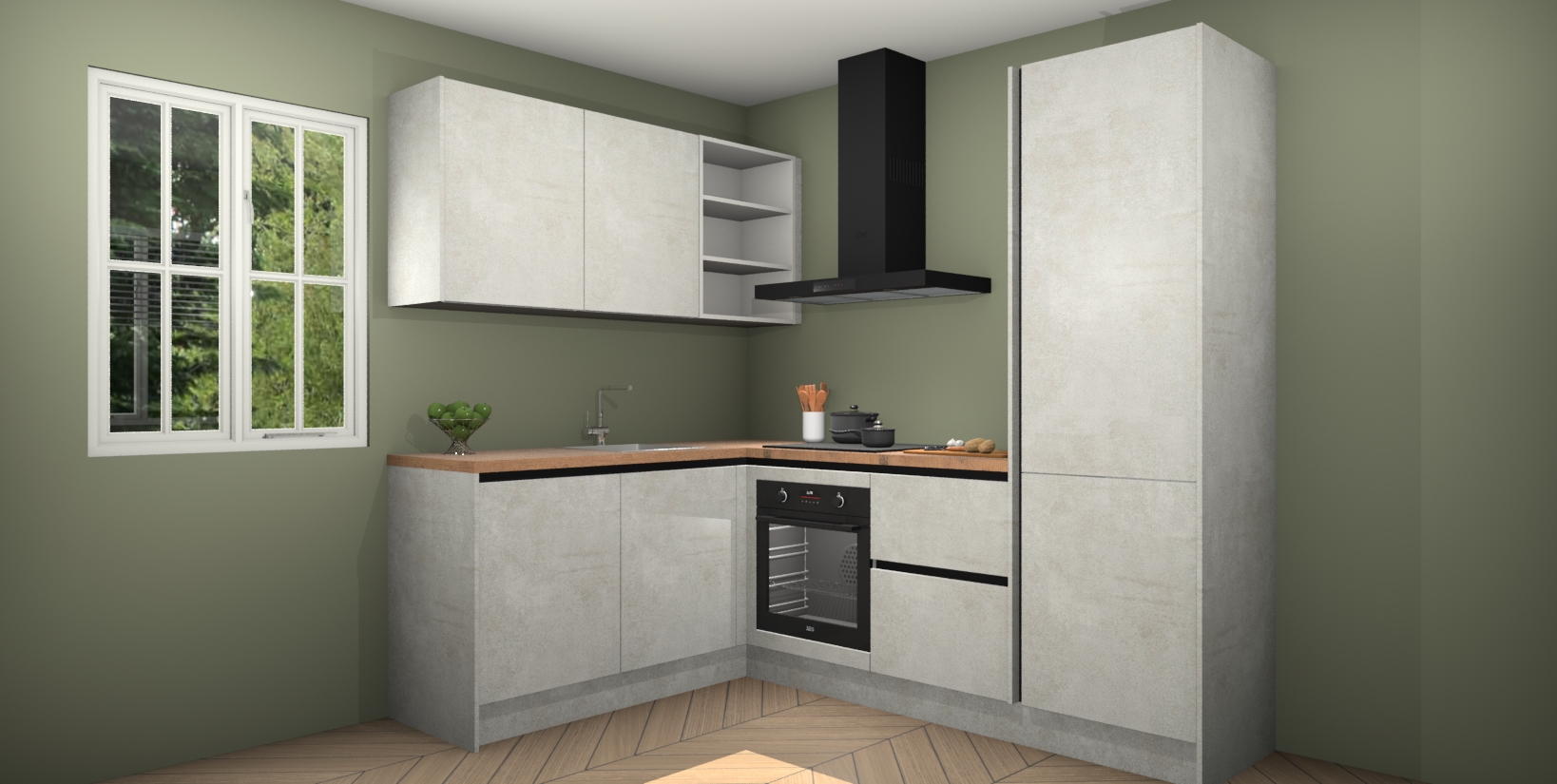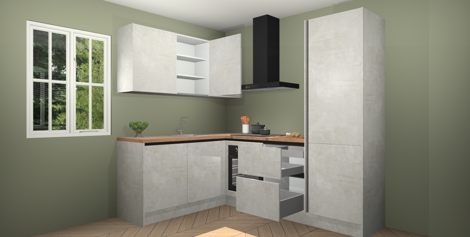 Maak kennis met de Beton Opaal greeploze keuken Boekarest, een moderne hoekkeuken waar al uw vrienden en familie jaloers op zullen zijn! Het verbluffende mooie ontwerp past in elk interieur en is een ideale keuze voor wie op zoek is naar een klassieke, maar verfijnde look.