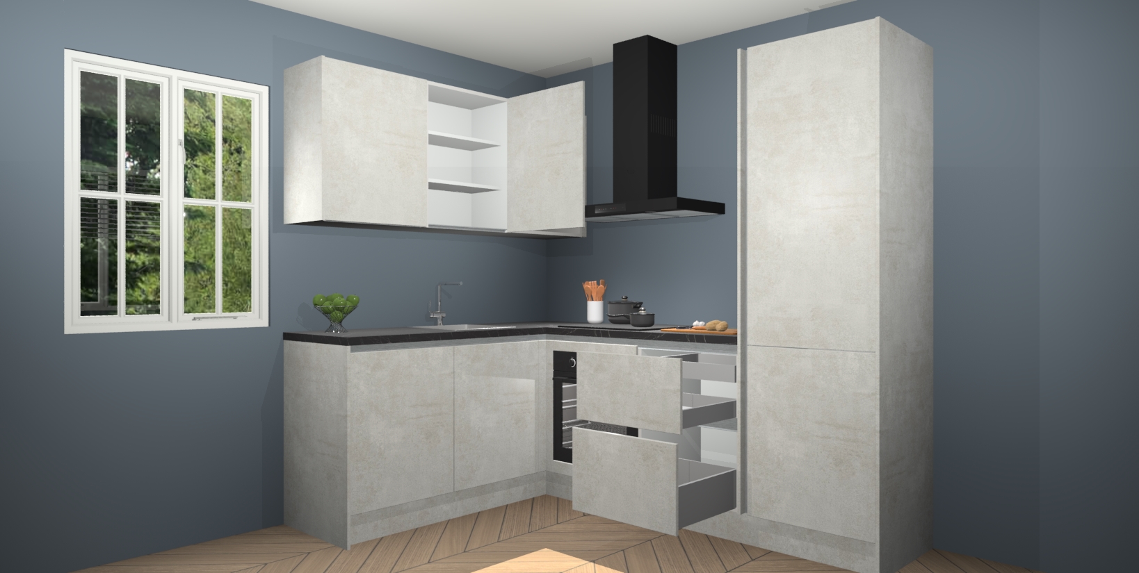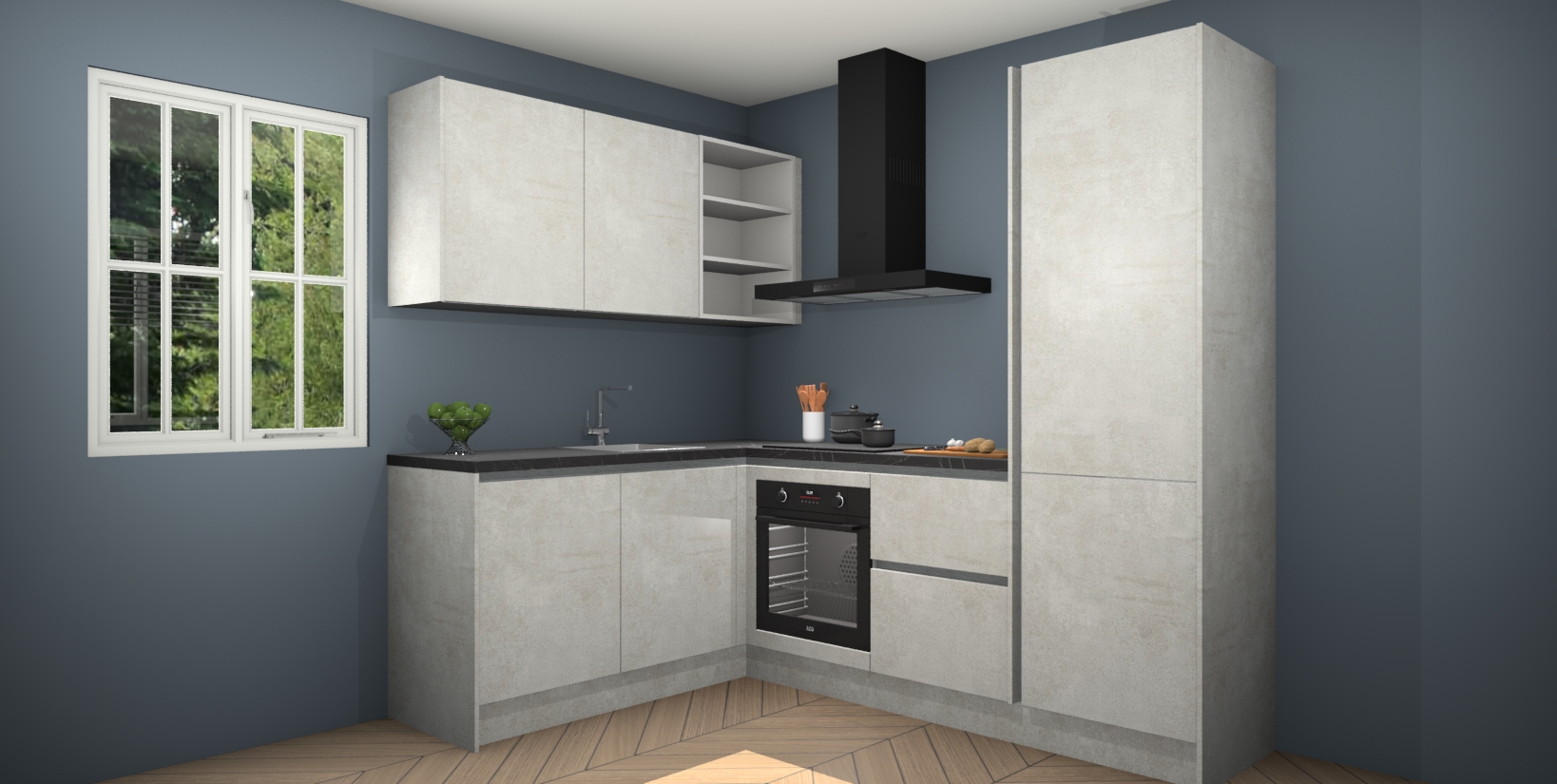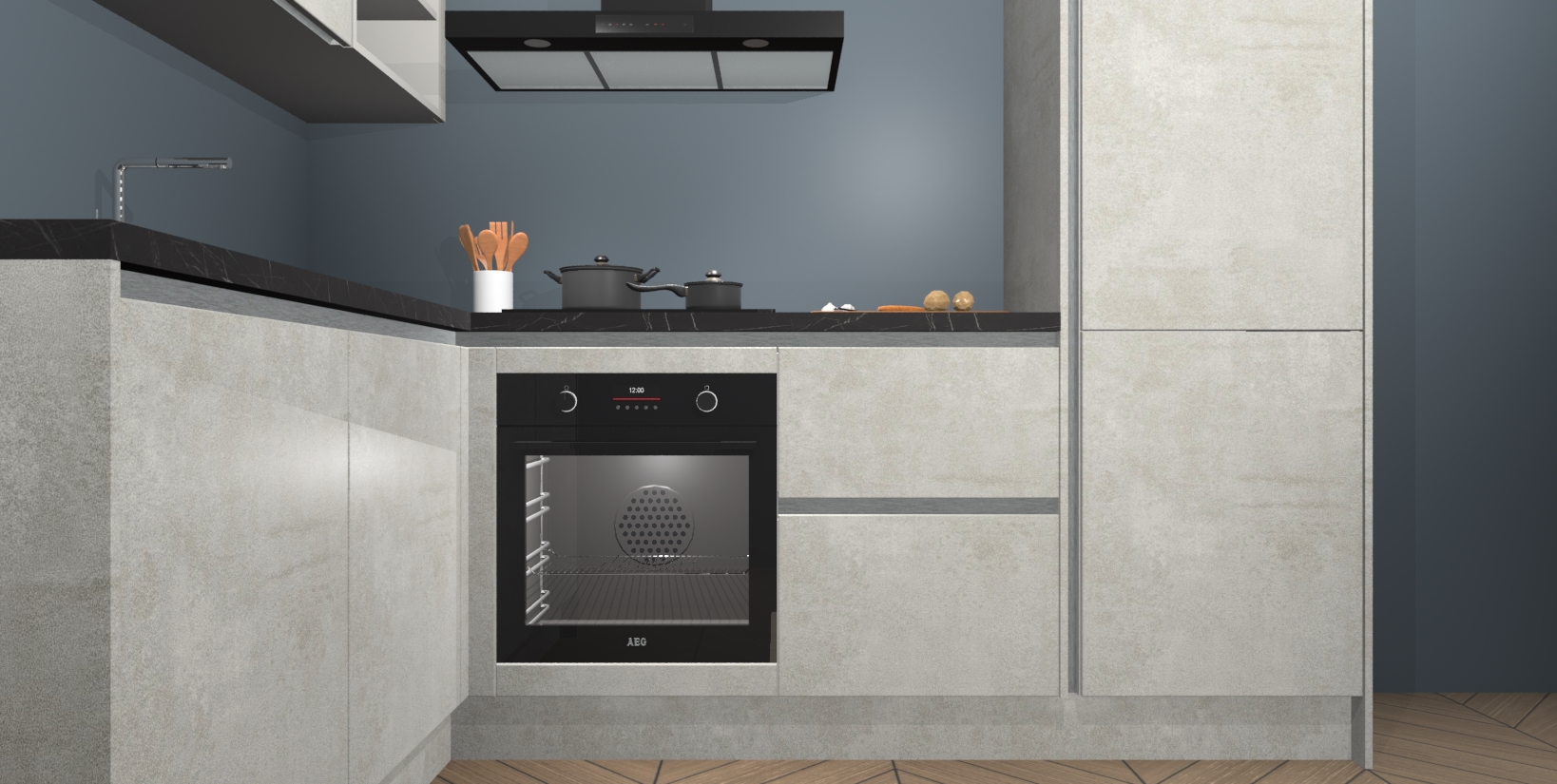 Maak kennis met de Beton Opaal greeploze keuken Boekarest, een moderne hoekkeuken waar al uw vrienden en familie jaloers op zullen zijn! Het verbluffende mooie ontwerp past in elk interieur en is een ideale keuze voor wie op zoek is naar een klassieke, maar verfijnde look.