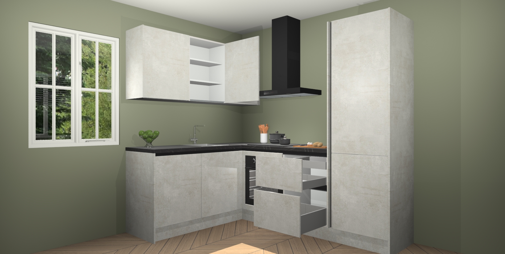 Maak kennis met de Beton Opaal greeploze keuken Boekarest, een moderne hoekkeuken waar al uw vrienden en familie jaloers op zullen zijn! Het verbluffende mooie ontwerp past in elk interieur en is een ideale keuze voor wie op zoek is naar een klassieke, maar verfijnde look.