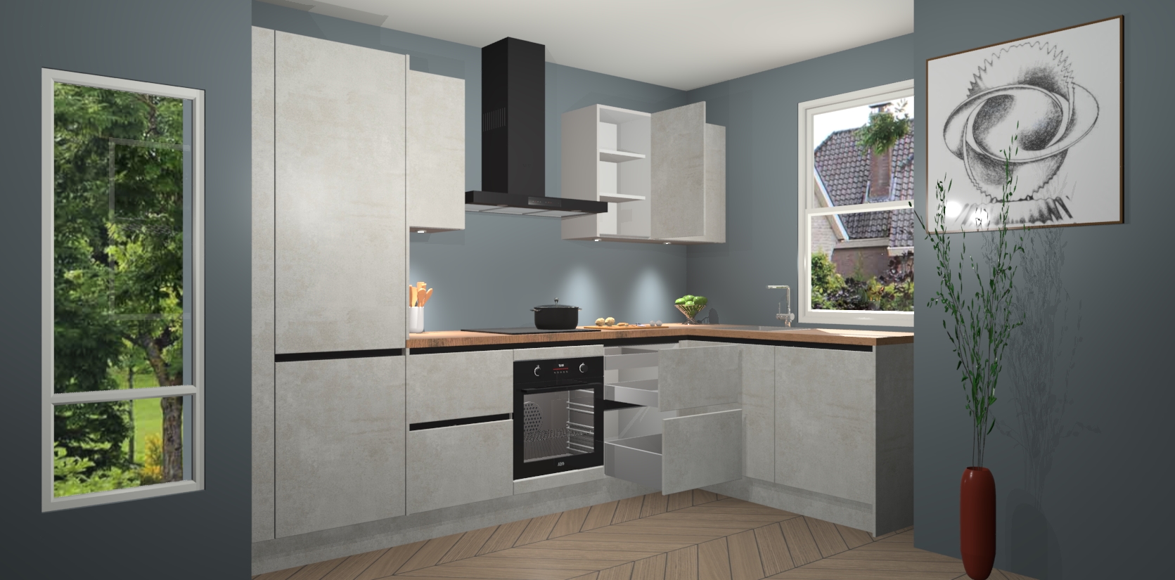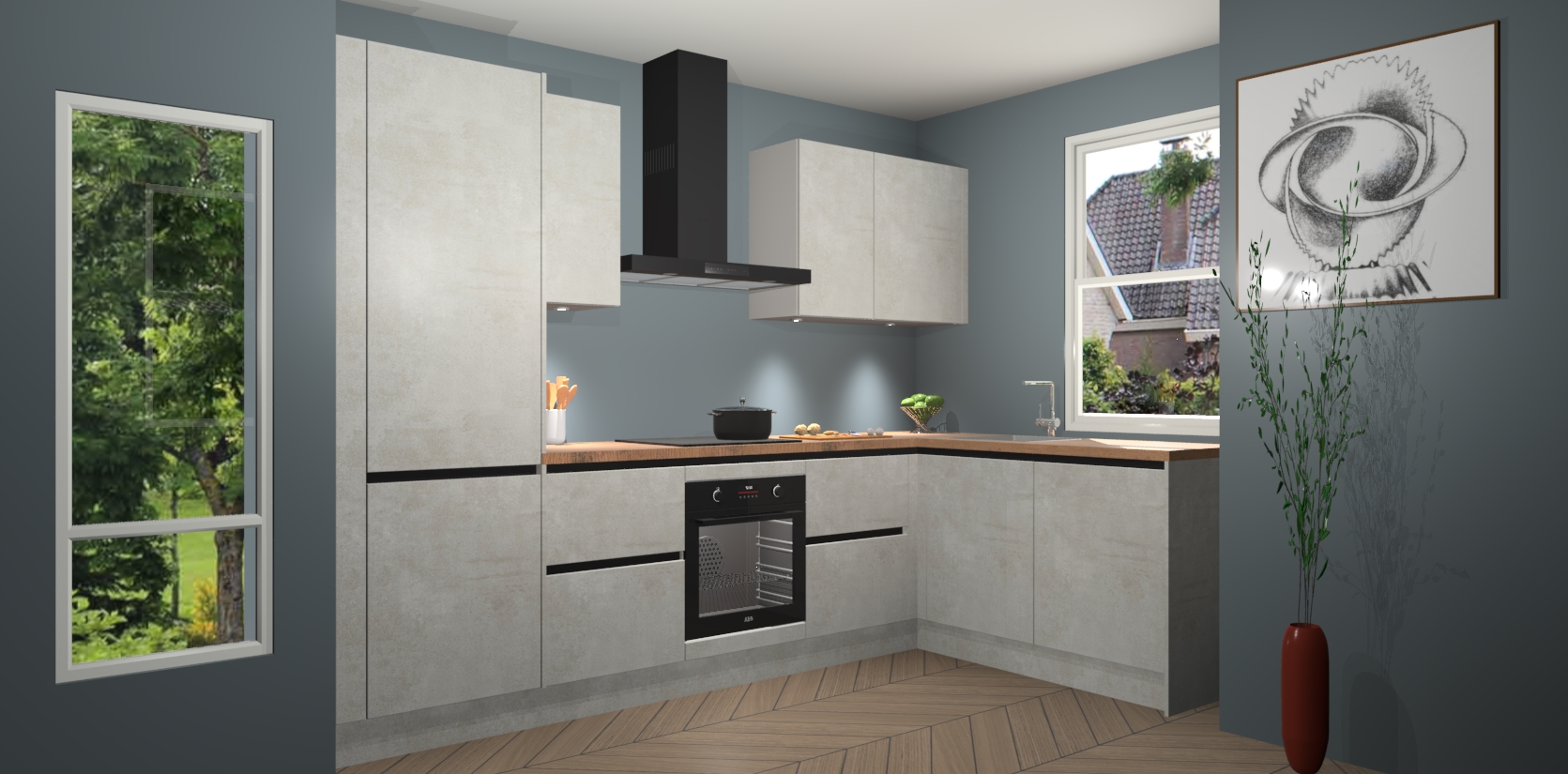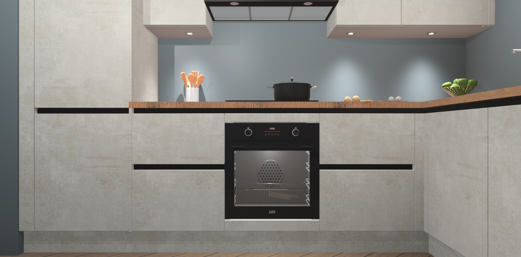 De Beton Opaal greeploze keuken Geneve is uitgerust met 5 inbouwapparaten - een oven, inductiekookplaat, afzuigkap, vaatwasser en koelkast - voor al uw kook- en bewaarbehoeftes. U kunt deze apparaten desgewenst eenvoudig upgraden naar AEG of de oven omruilen voor een combimagnetron na het plaatsen van uw bestelling. En met de soft close deuren, voldoende opbergruimte en kasten die voorgemonteerd worden geleverd, bent u in een mum van tijd klaar om heerlijke maaltijden te bereiden!