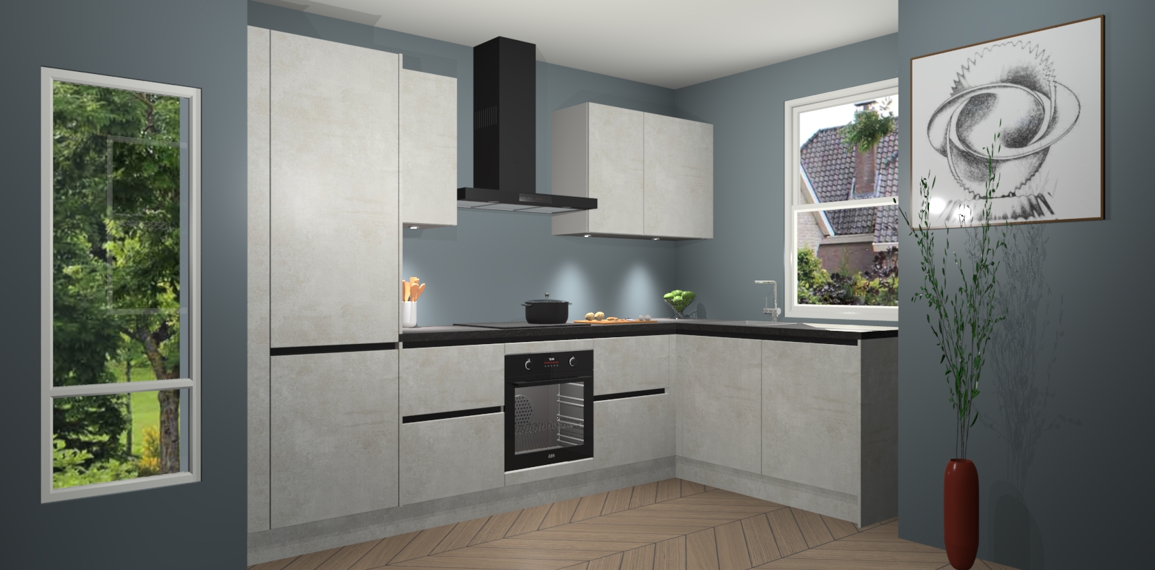 De Beton Opaal greeploze keuken Geneve is precies wat u nodig heeft als u op zoek bent naar modern design, versmolten met tijdloze schoonheid. De strakke afwerking voegt klasse toe terwijl het toch een uitnodigende sfeer behoudt; zeker om zowel gasten als uzelf te inspireren om in stijl te gaan koken! En nog beter, het zal uw budget niet breken - dus waarom wachten? Met de Beton Opaal greeploze keuken Geneve bent u verzekerd van kwaliteit zonder in te leveren op de prijs!
