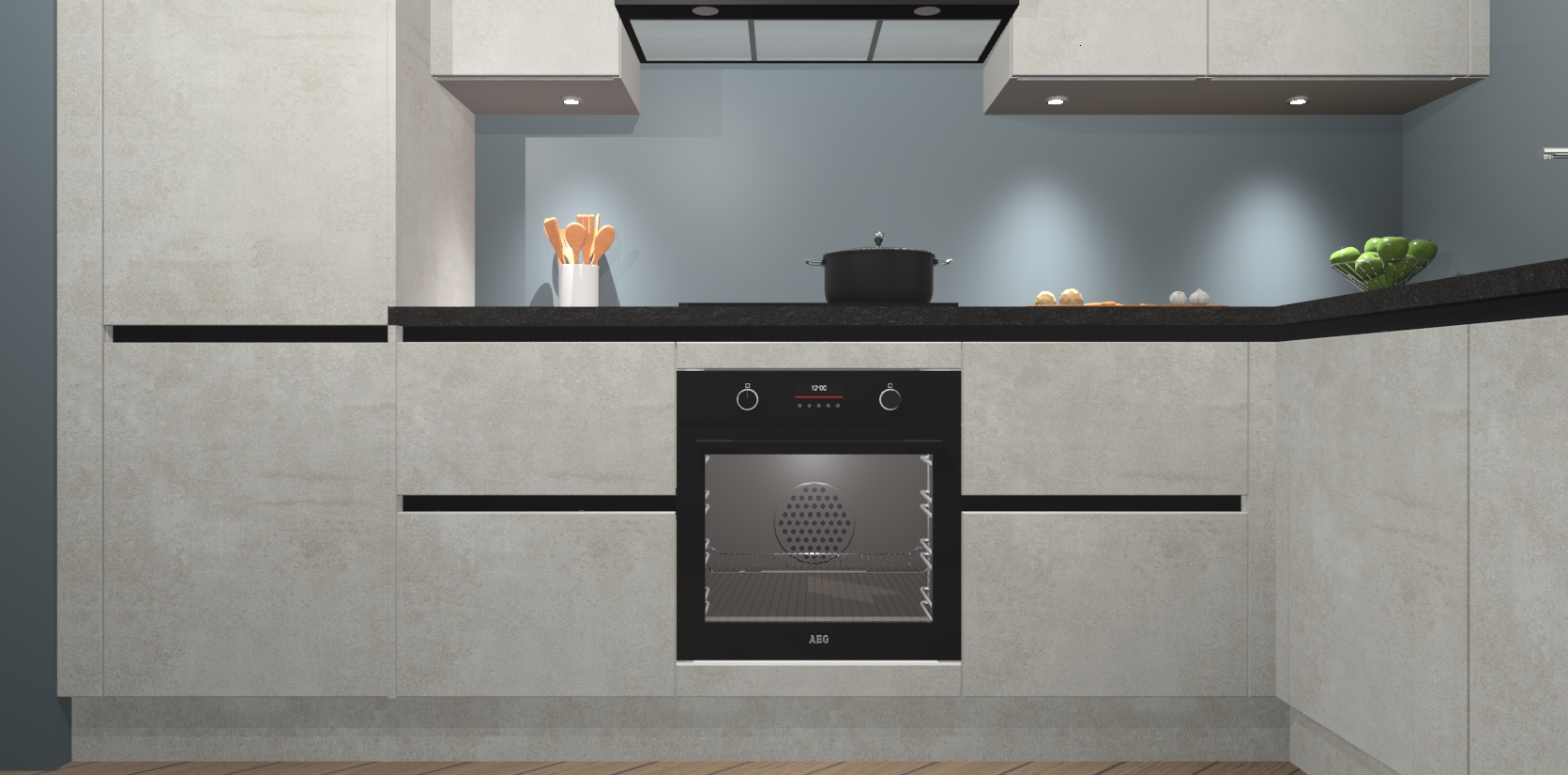 De Beton Opaal greeploze keuken Geneve is uitgerust met 5 inbouwapparaten - een oven, inductiekookplaat, afzuigkap, vaatwasser en koelkast - voor al uw kook- en bewaarbehoeftes. U kunt deze apparaten desgewenst eenvoudig upgraden naar AEG of de oven omruilen voor een combimagnetron na het plaatsen van uw bestelling. En met de soft close deuren, voldoende opbergruimte en kasten die voorgemonteerd worden geleverd, bent u in een mum van tijd klaar om heerlijke maaltijden te bereiden!